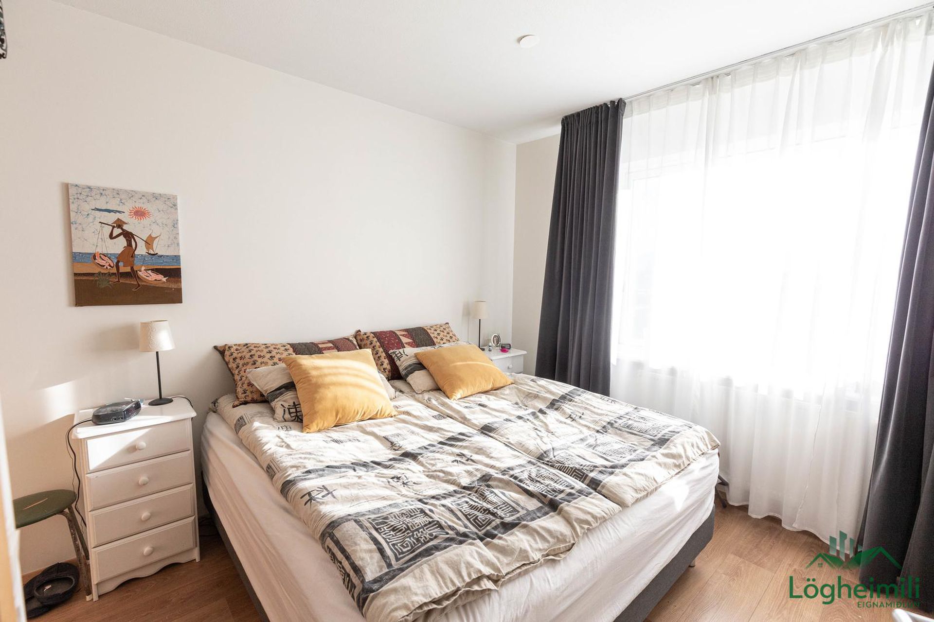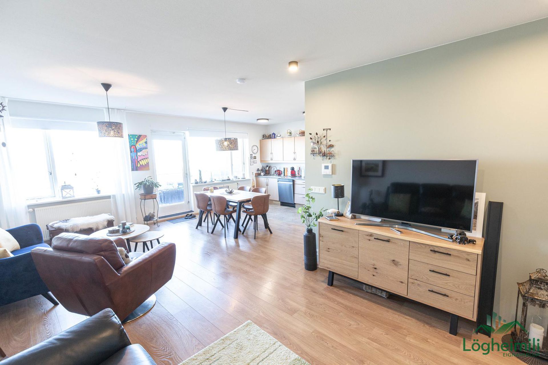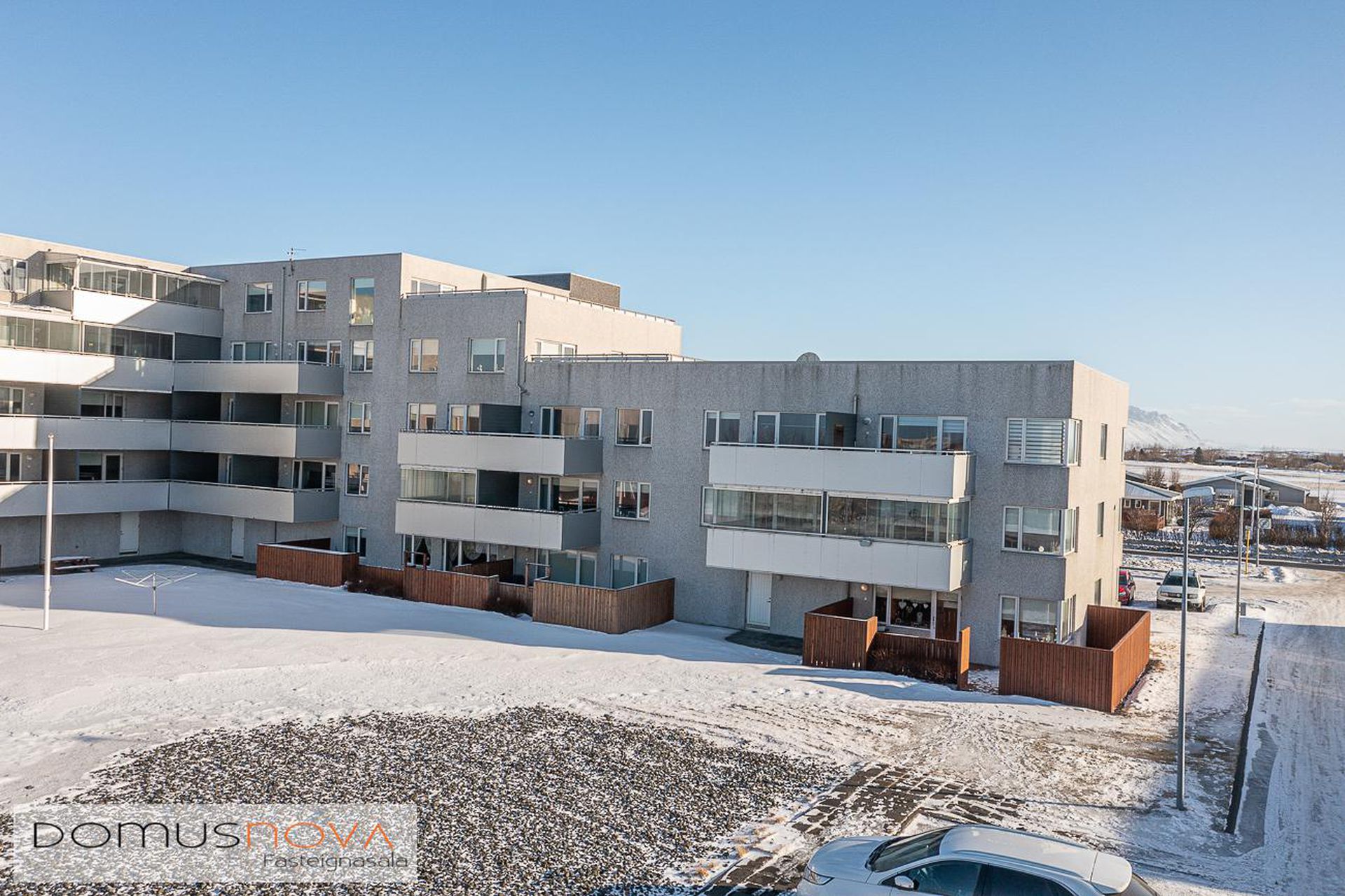 Íbúðin skiptist í forstofu, eldhús, stofu með útgang út á svalir, hjónaherbergi, barnaherbergi, baðherbergi og sér þvottahús innan íbúðar. Geymsla og hjóla/vagnageymsla á jarðhæð. Fjórar rafhleðslustöðvar á bílaplani.
