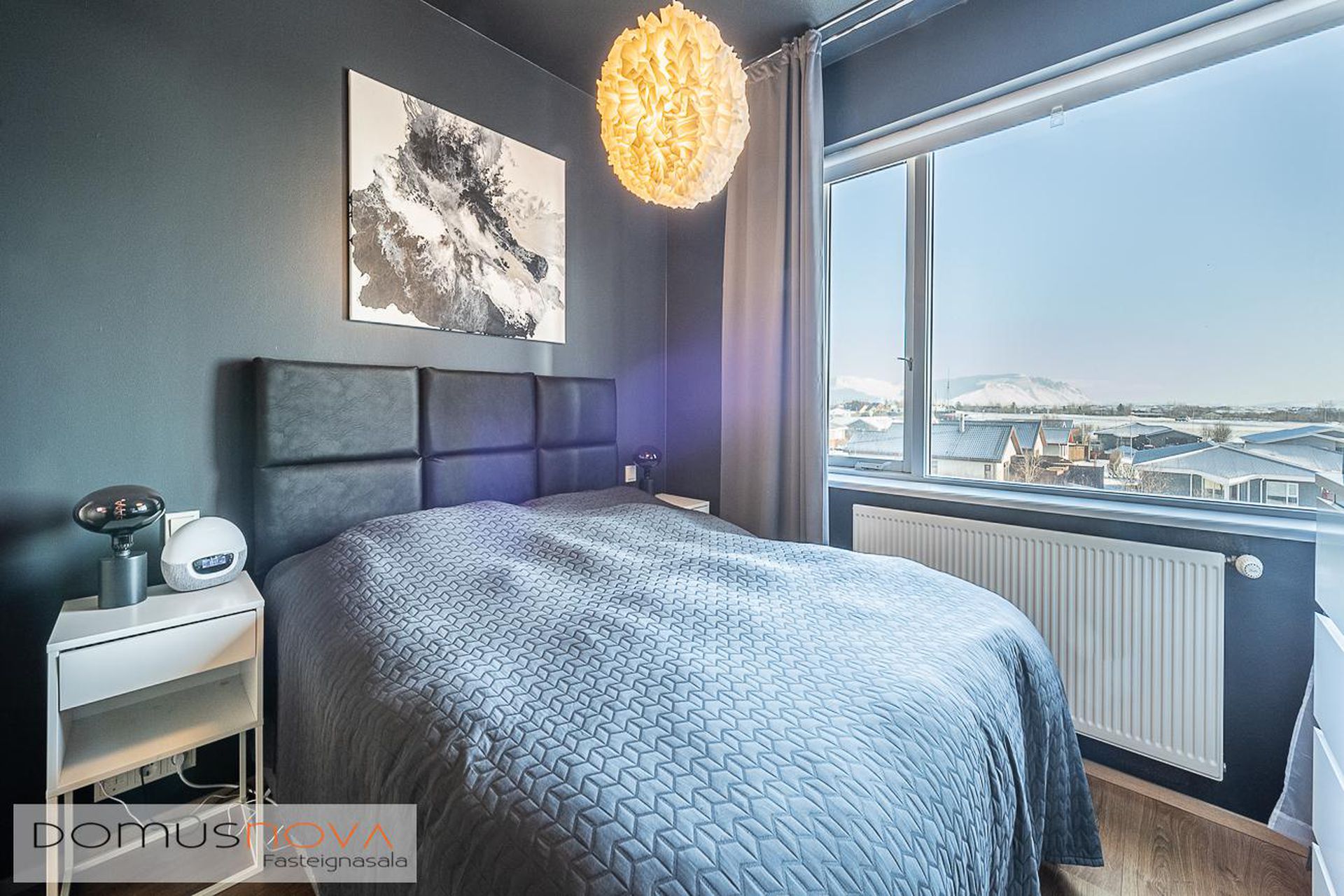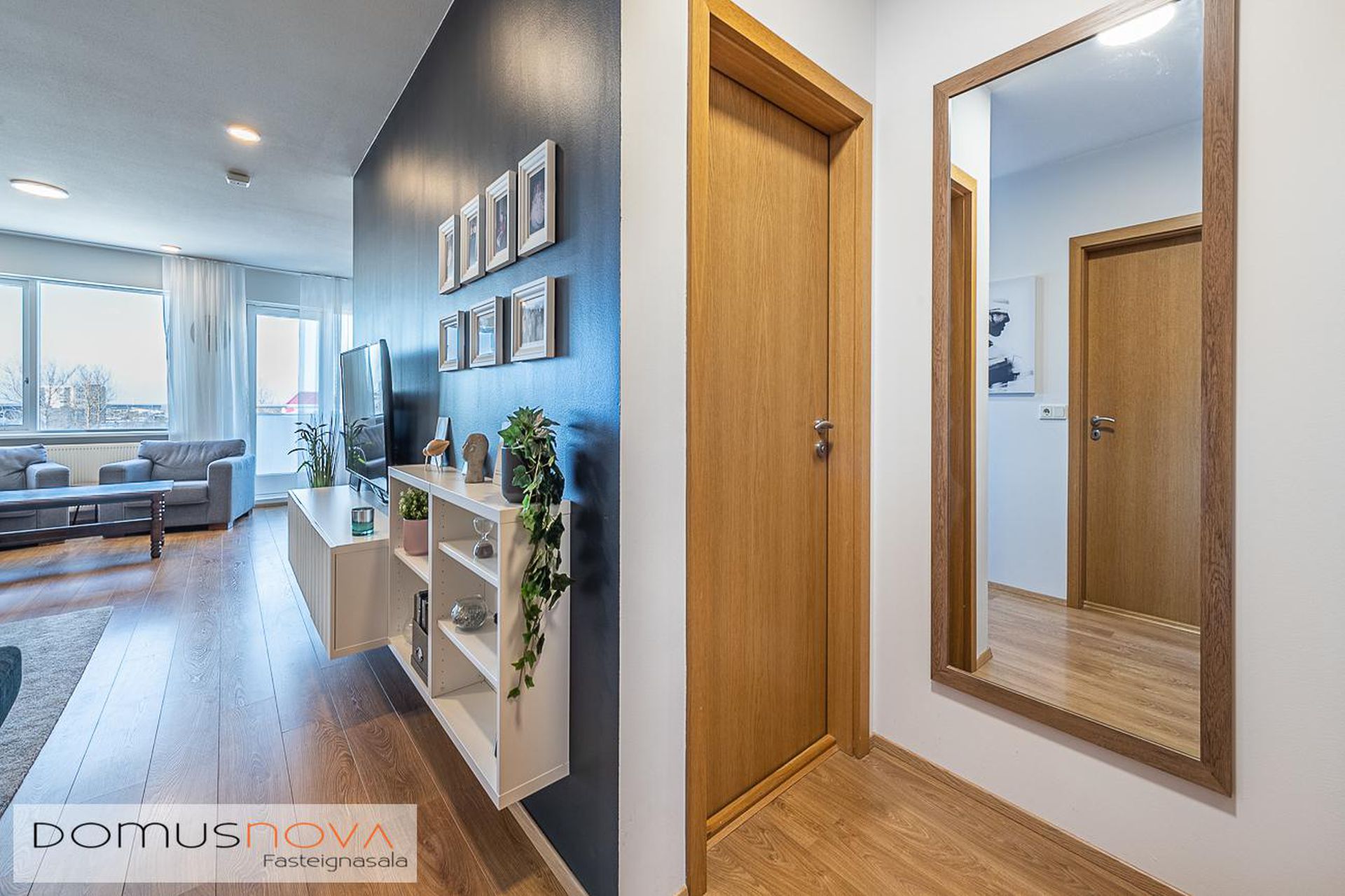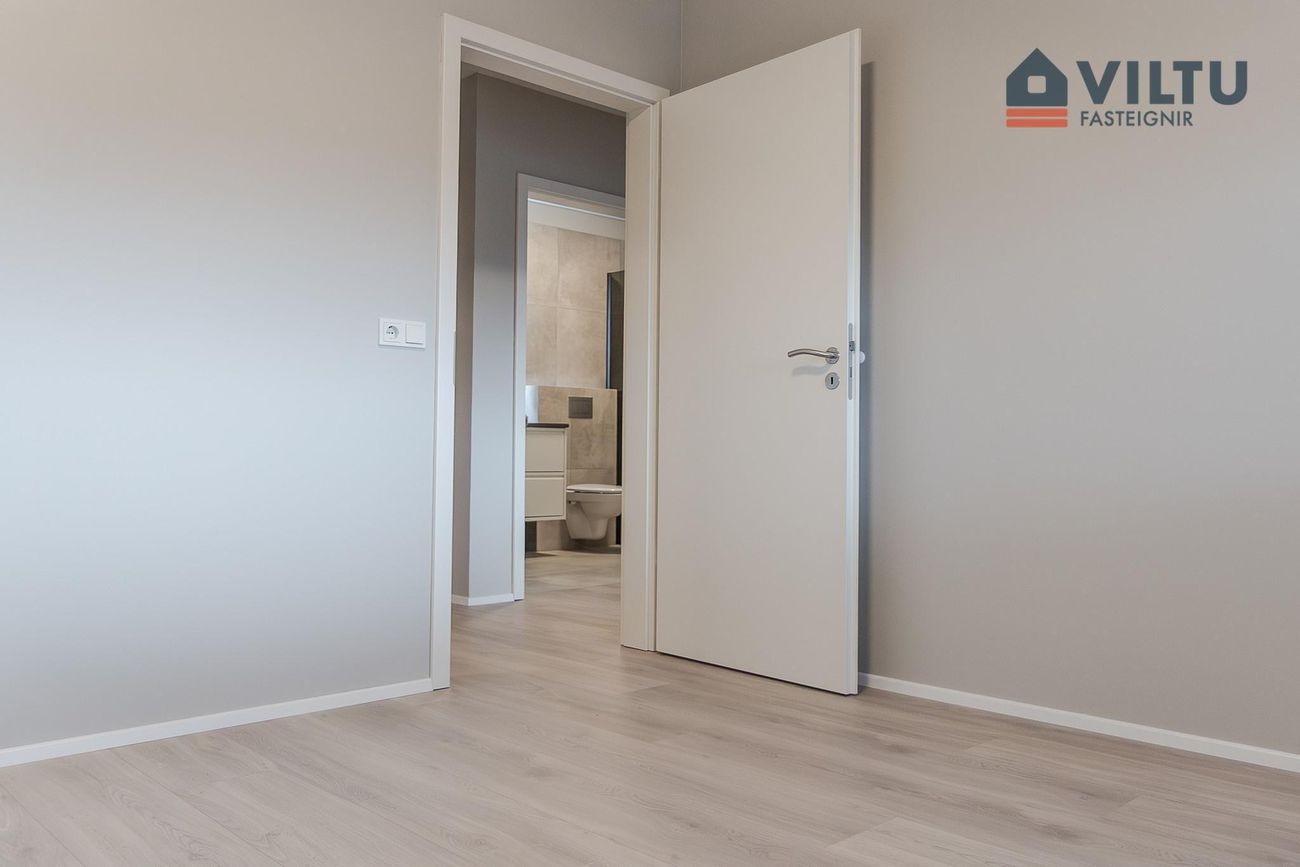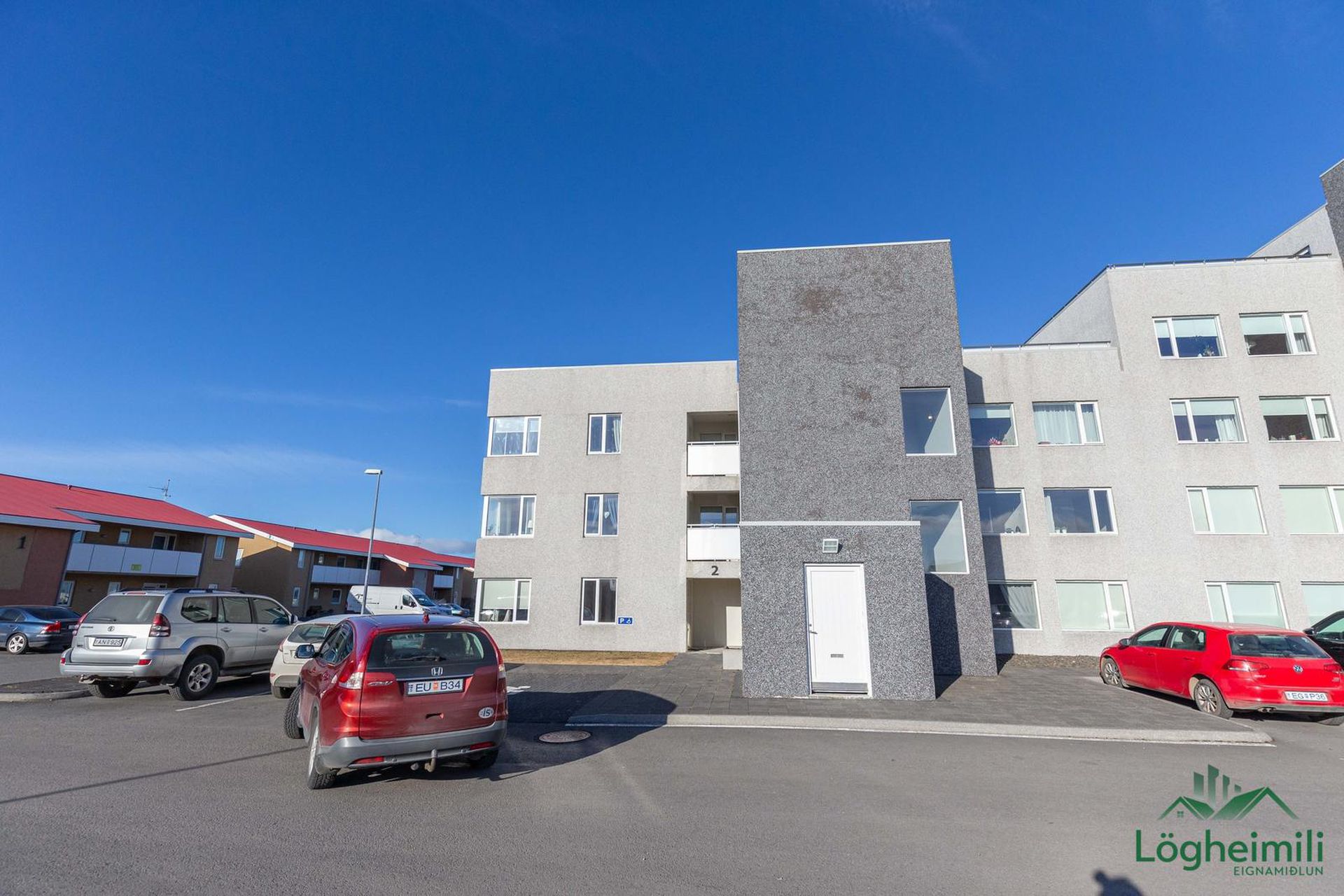 Íbúðin skiptist í forstofu, eldhús, stofu með útgang út á svalir, hjónaherbergi, barnaherbergi, baðherbergi og sér þvottahús innan íbúðar. Geymsla og hjóla/vagnageymsla á jarðhæð. Fjórar rafhleðslustöðvar á bílaplani.