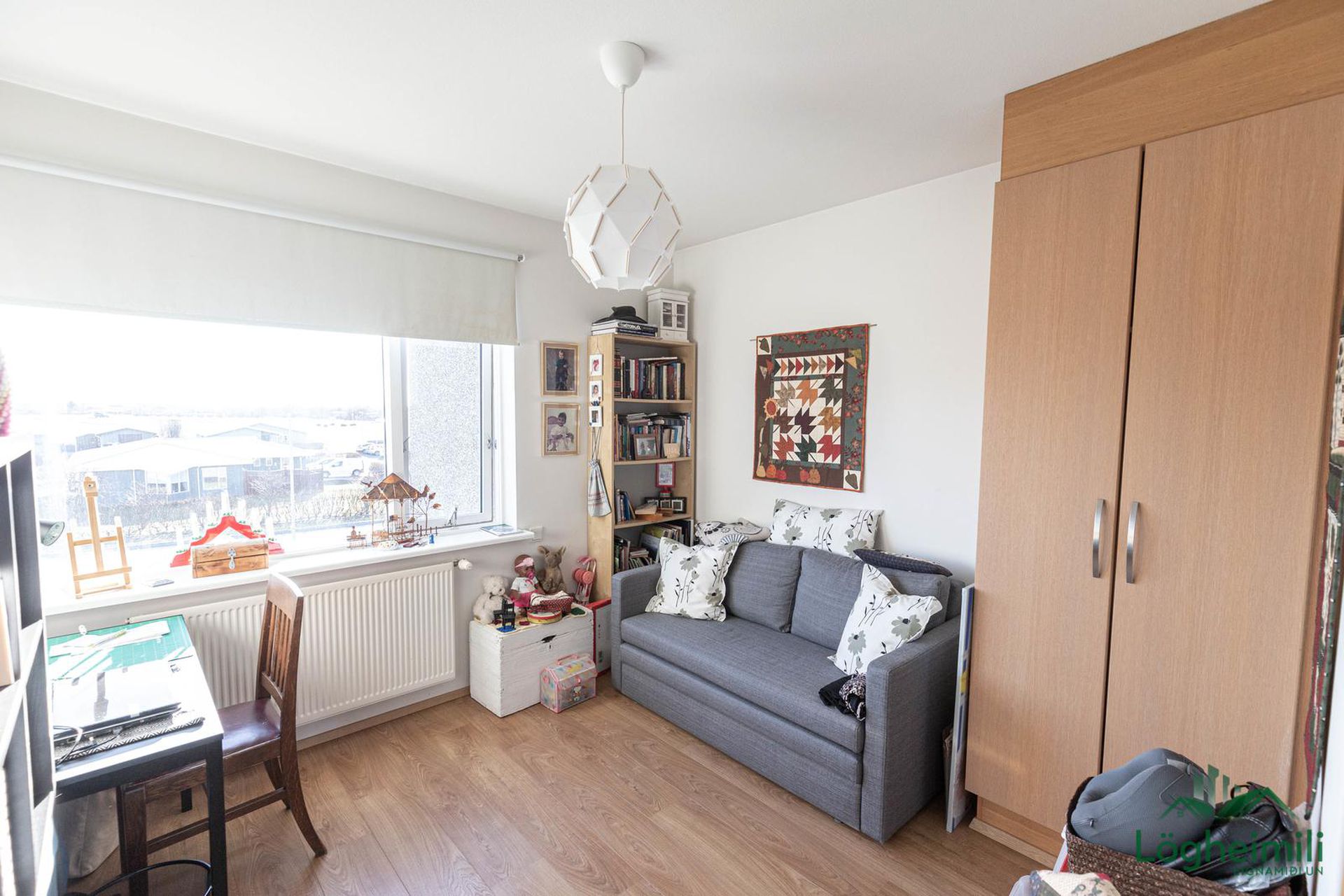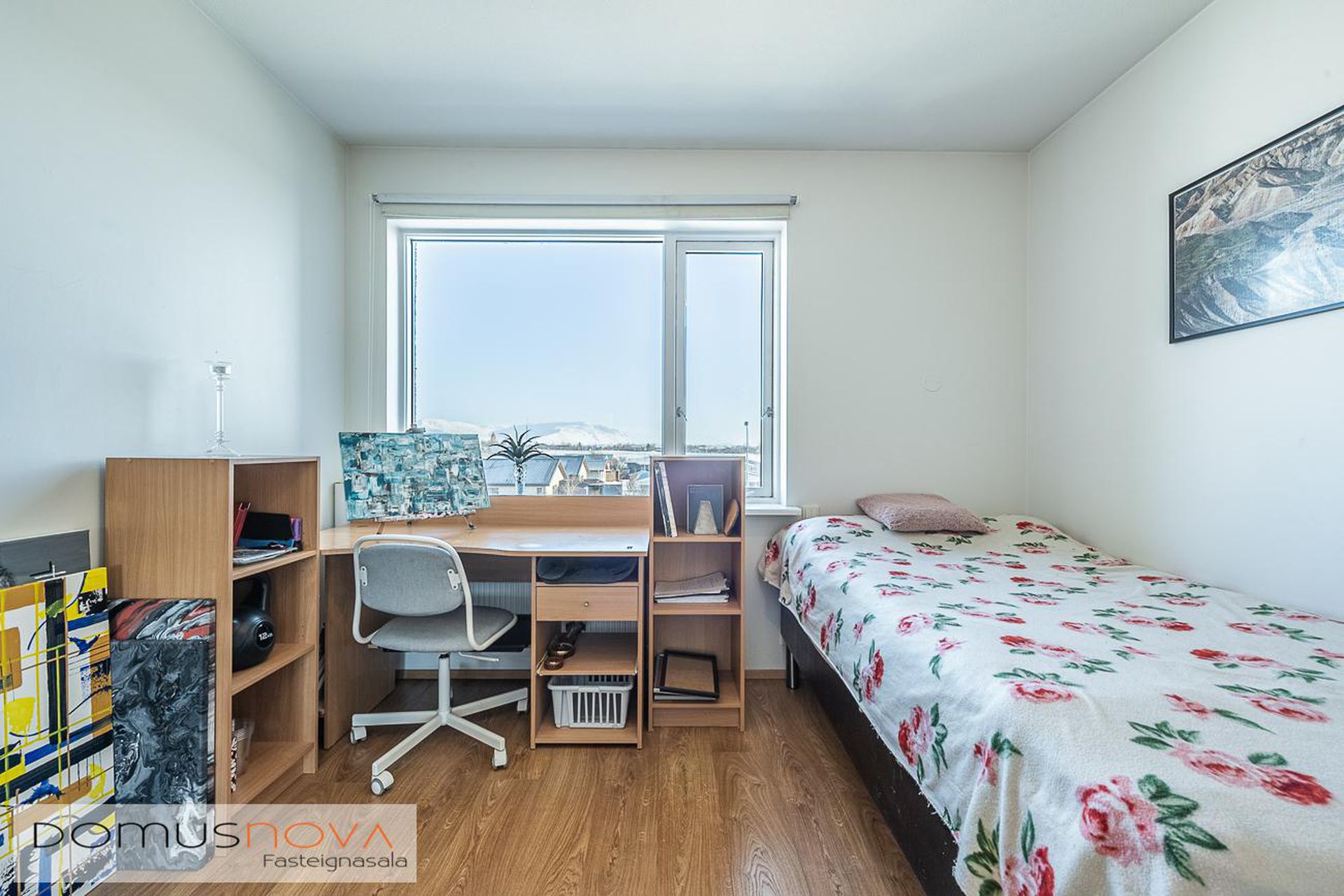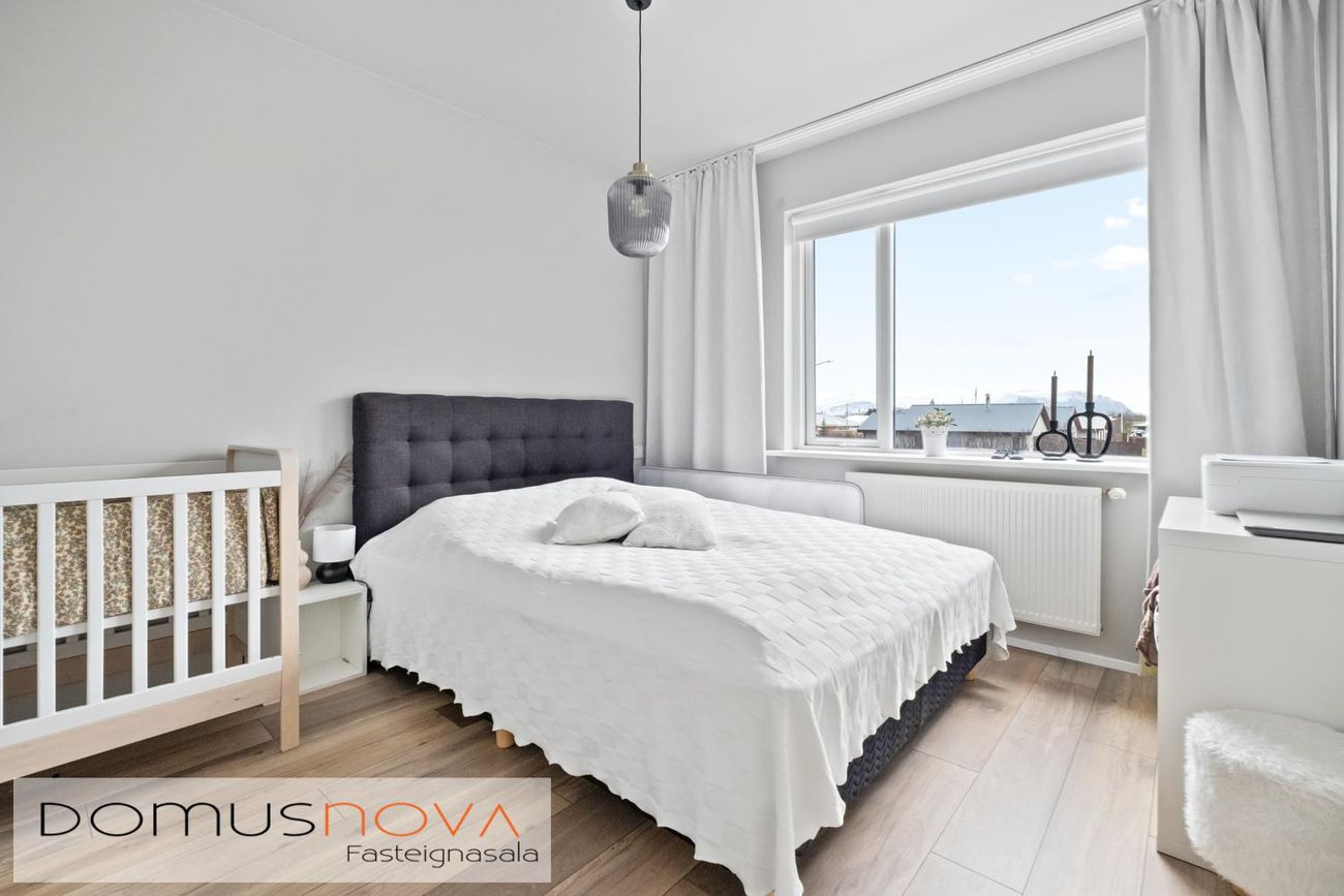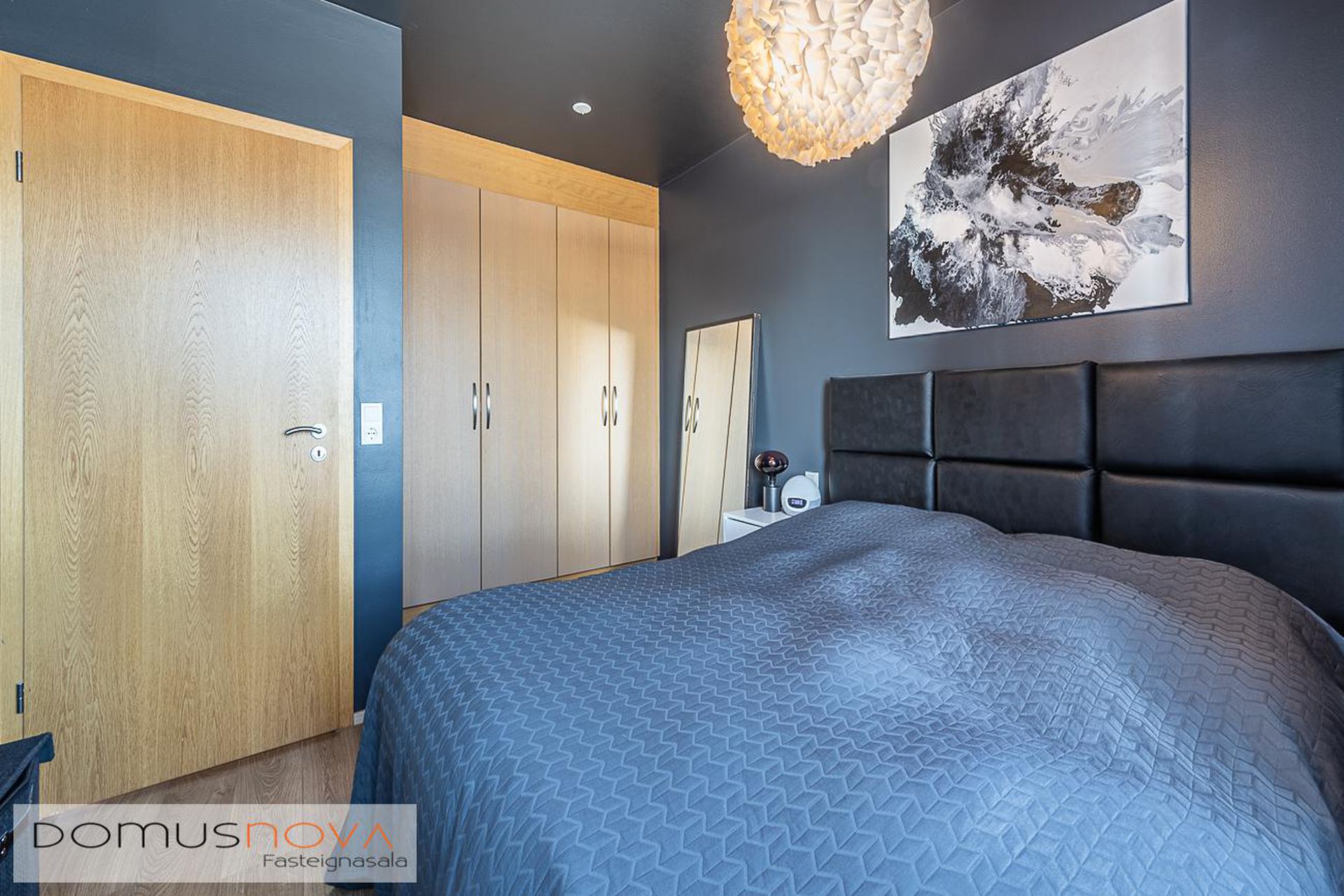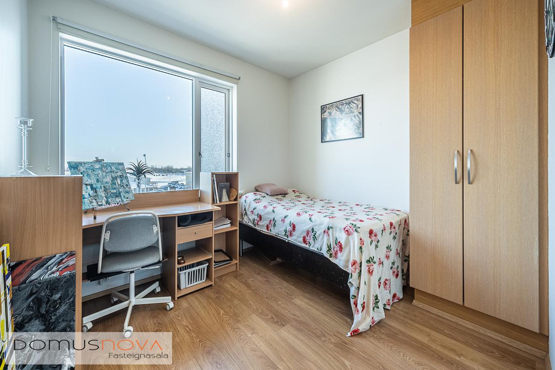 Hjónaherbergi: Rúmgott með parketi á gólfi og góðum fataskáp. Barnaherbergi: Með parketi á gólfi og góðum fataskáp.