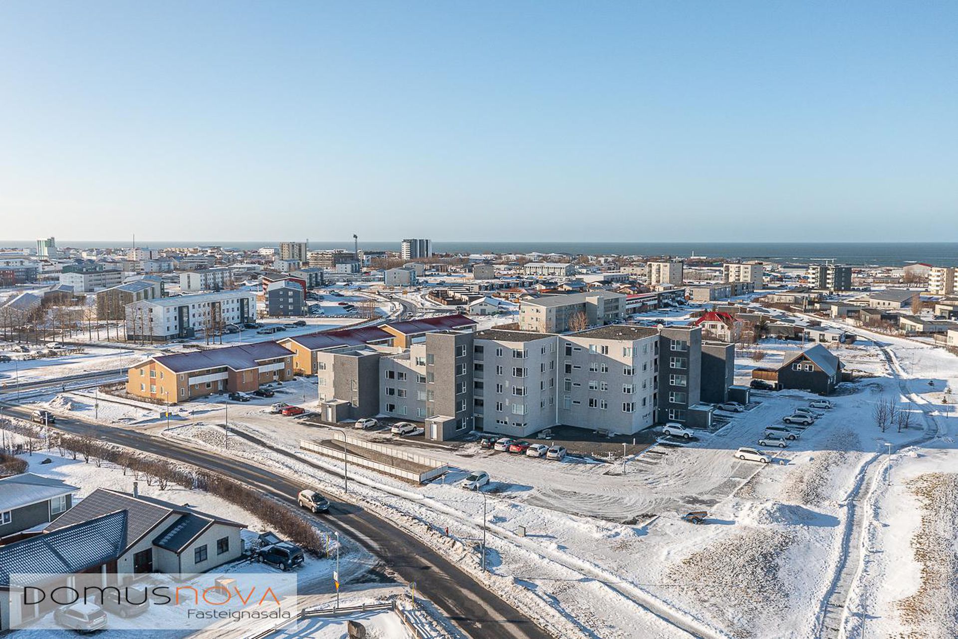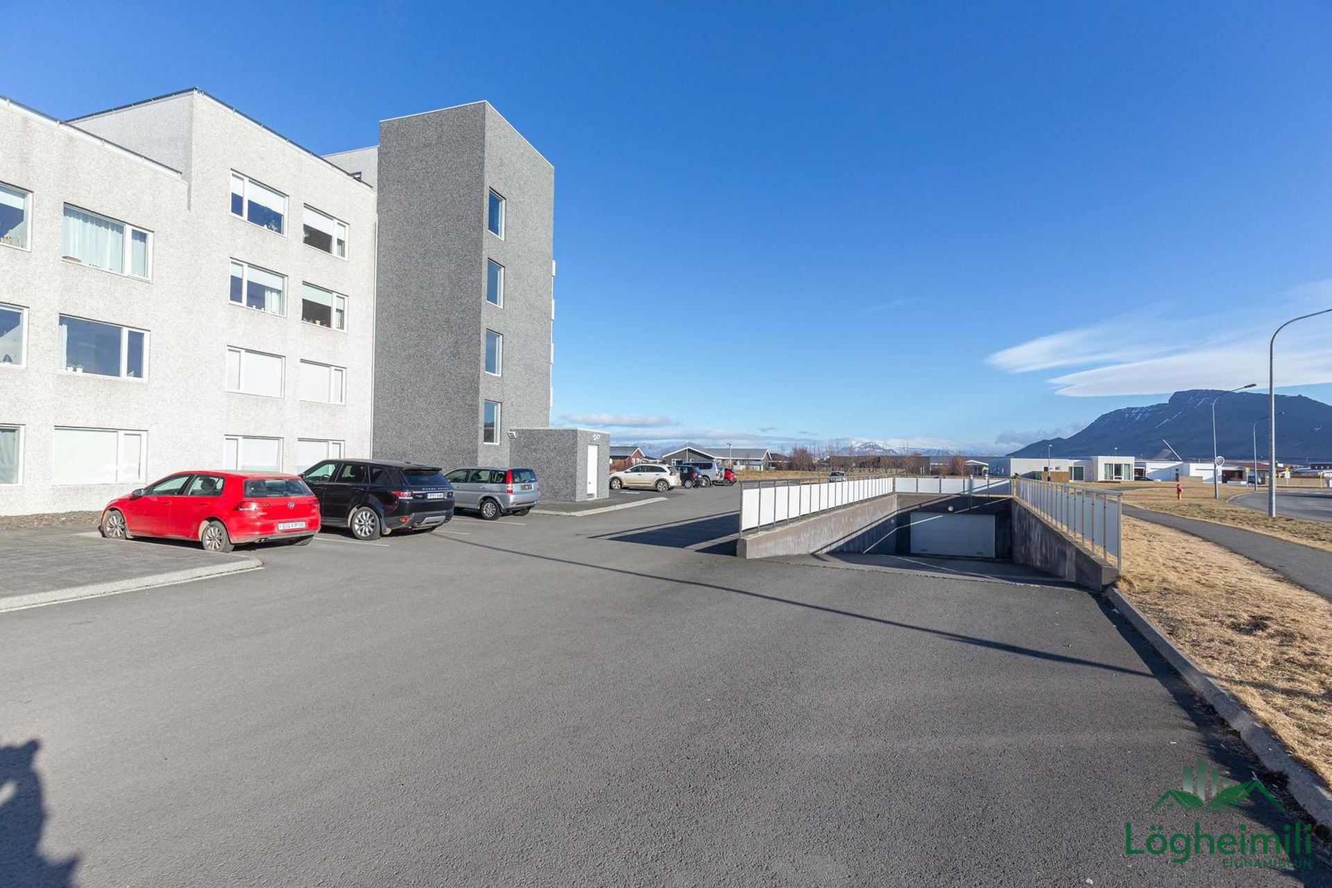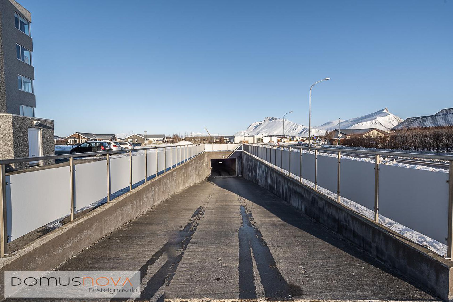Sameiginleg hjóla/vagnageymsla á 1.hæð. Fjórar rafhleðslustöðvar á bílaplani.