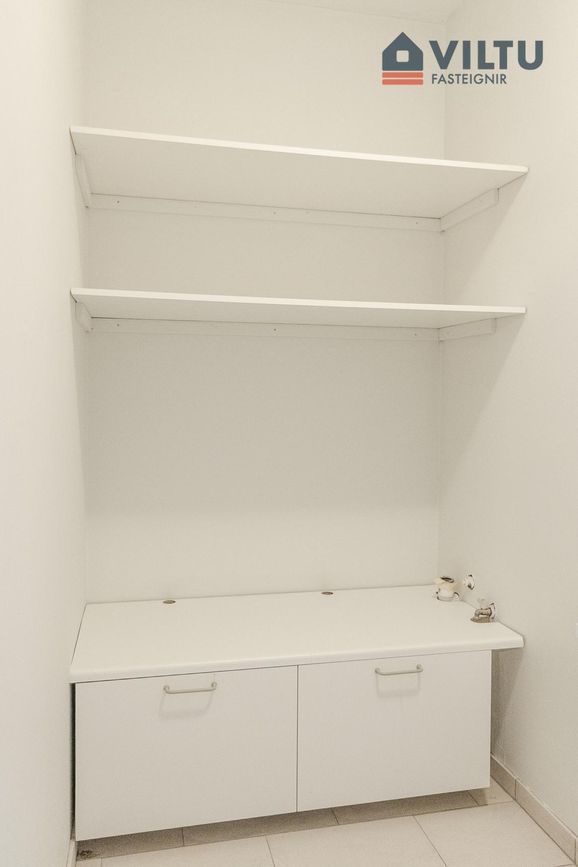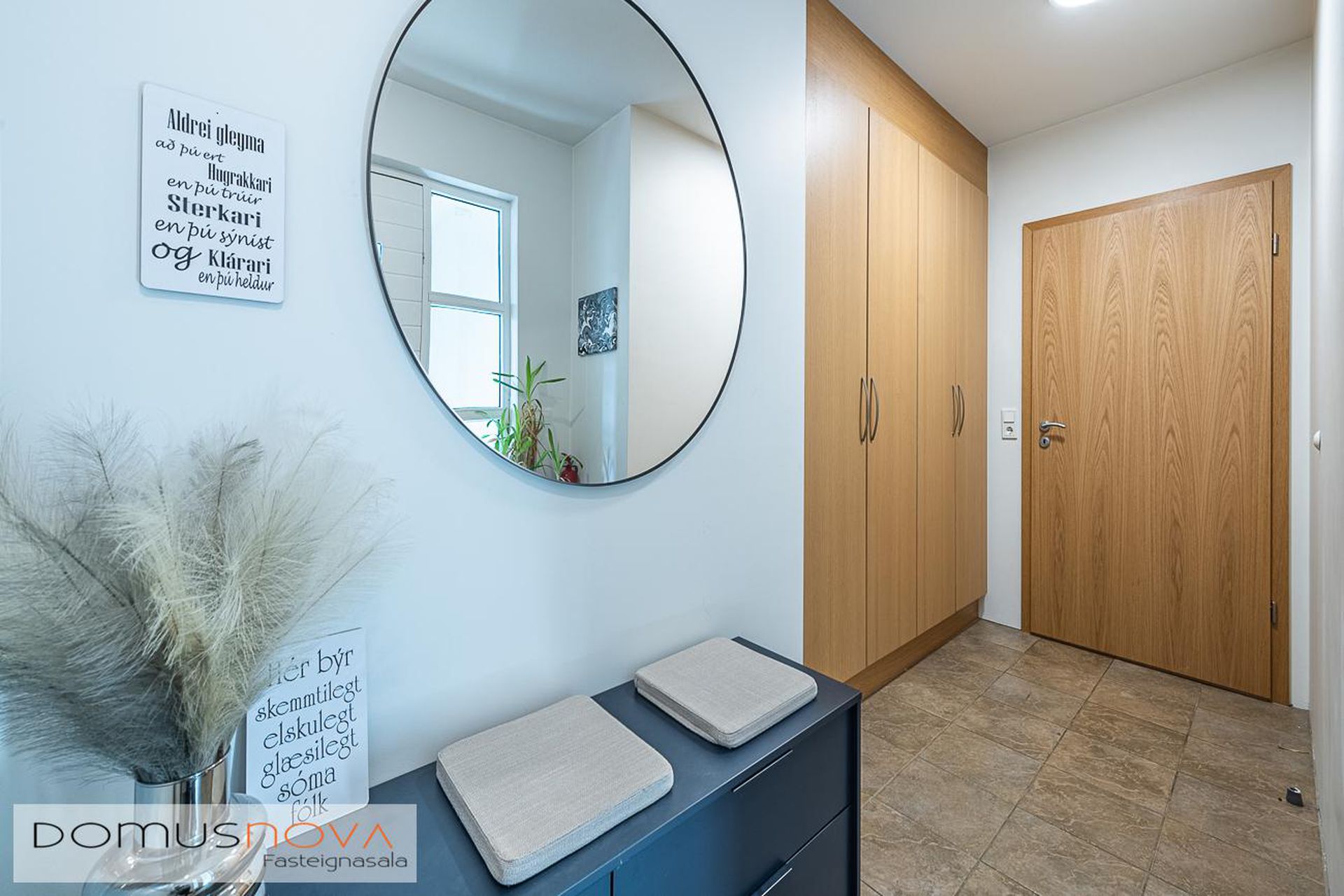 Góður fataskápur í forstofu. Sér geymsla í kjallara að Tindaflöt 4.