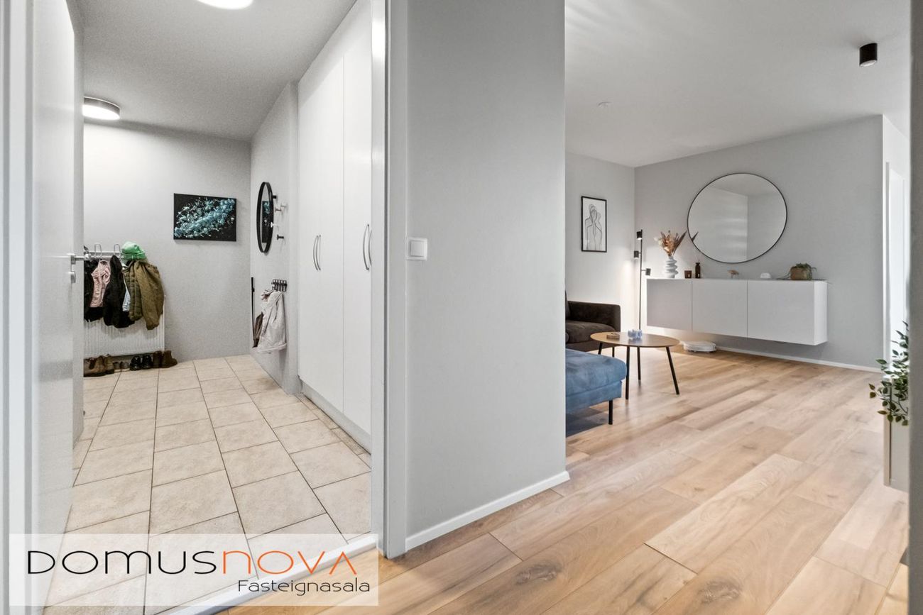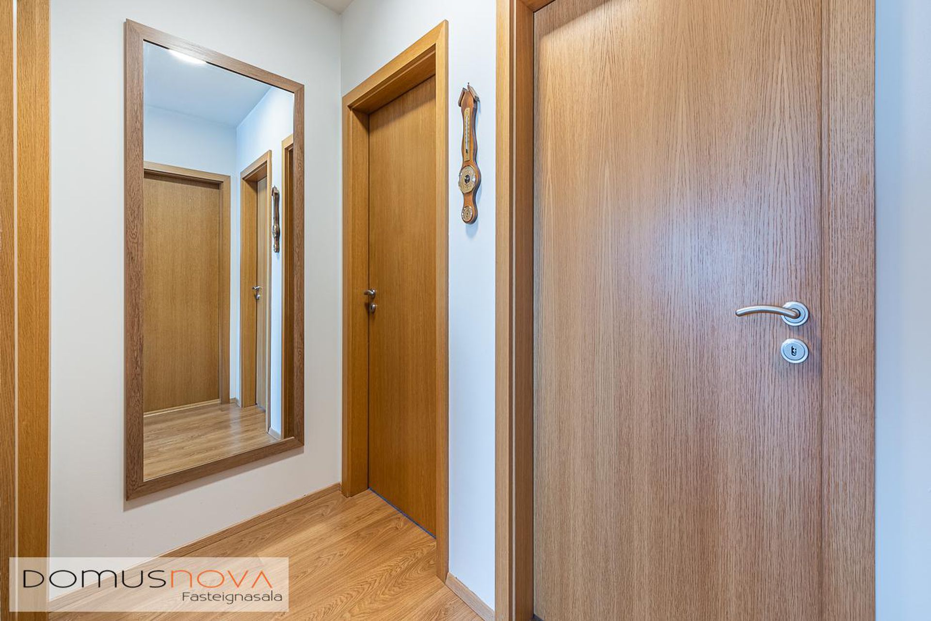 Parket á gólfi í stofu, eldhúsi og svefnherbergjum. Flísar í forstofu og baðherbergi. Timburflísalegt svalagólf.