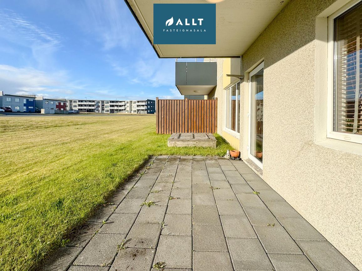 Eignin hefur 3 rúmgóð svefnherbergi, stofa/borðstofa, baðherbergi, eldhús, þvottahús og geymsla. Einnig er sameiginleg geymsla í sameign. Útgengt er út í garð frá stofu. Tvö merkt bílastæði fylgja eigninni og sameiginleg hjóla/vagna geymsla.** Góð eign á vinsælum stað þar sem stutt er í skóla, leikskóla, sundlaug, bókasafn, verslun og fleira sem sannarlega vert er að skoða*** 3 rúmgóð svefnherbergi