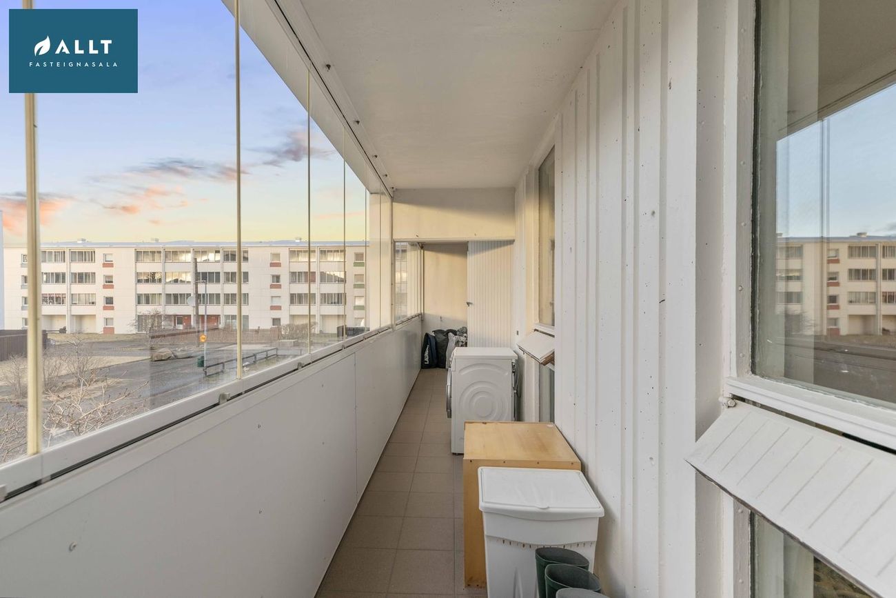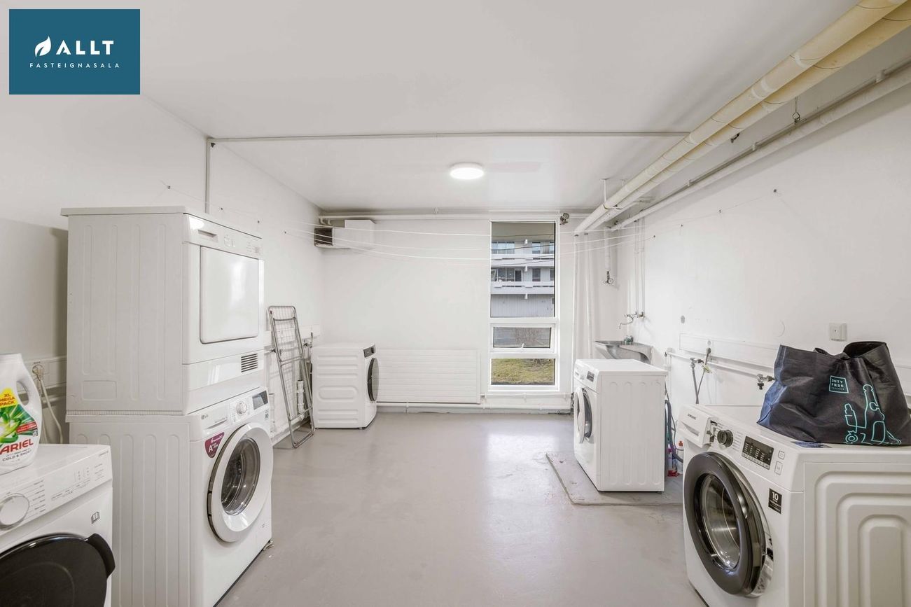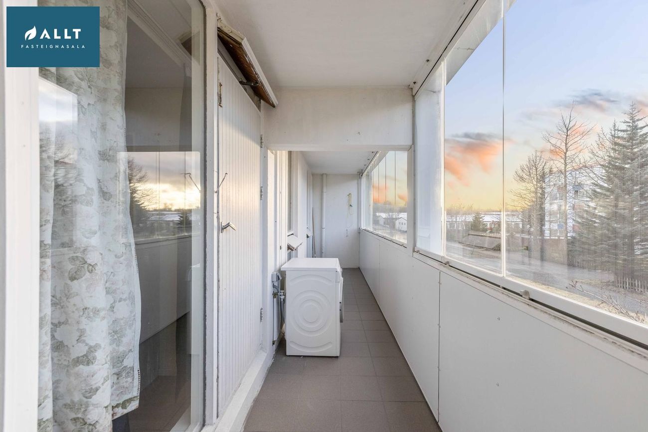 Svalir eru yfirbyggðar, útgengt frá stofu. Tengi fyrir þvottavél er svölum.