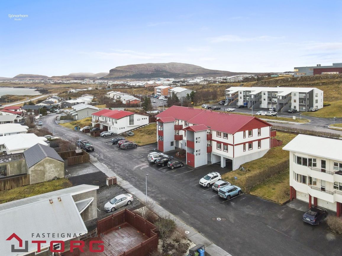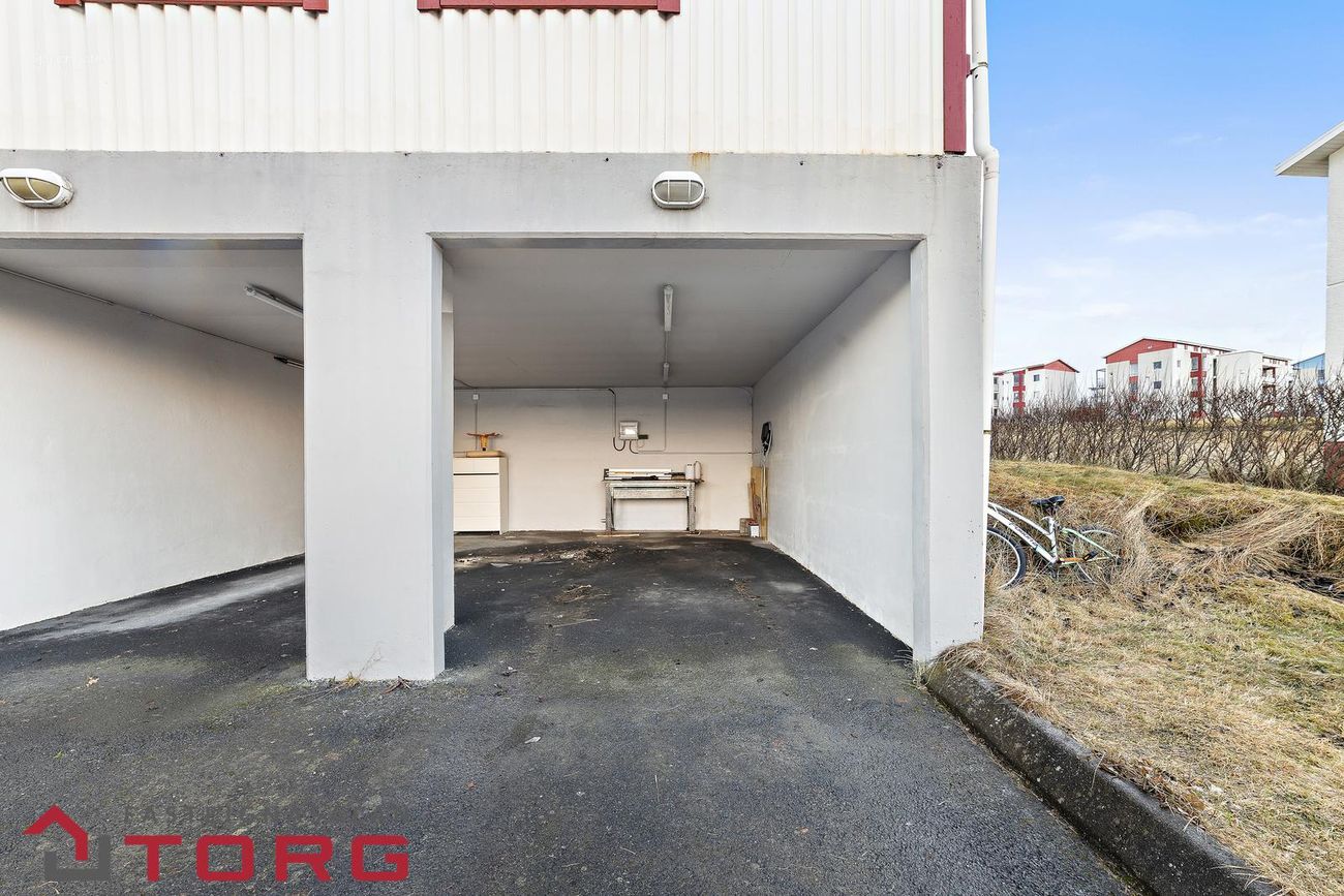 21,4m² opið bílskýli með rafmagni, hleðslustöð, köldu vatni og frárennsli.