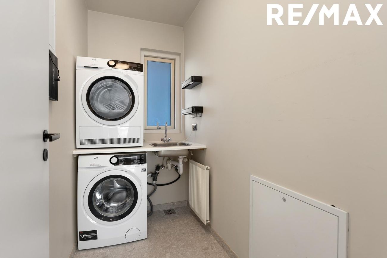 Eldhúsið er með nýlegri og fallegri innrétting, nýjum eldhús- og blöndunartækjum. Gott vinnu og skápapláss.