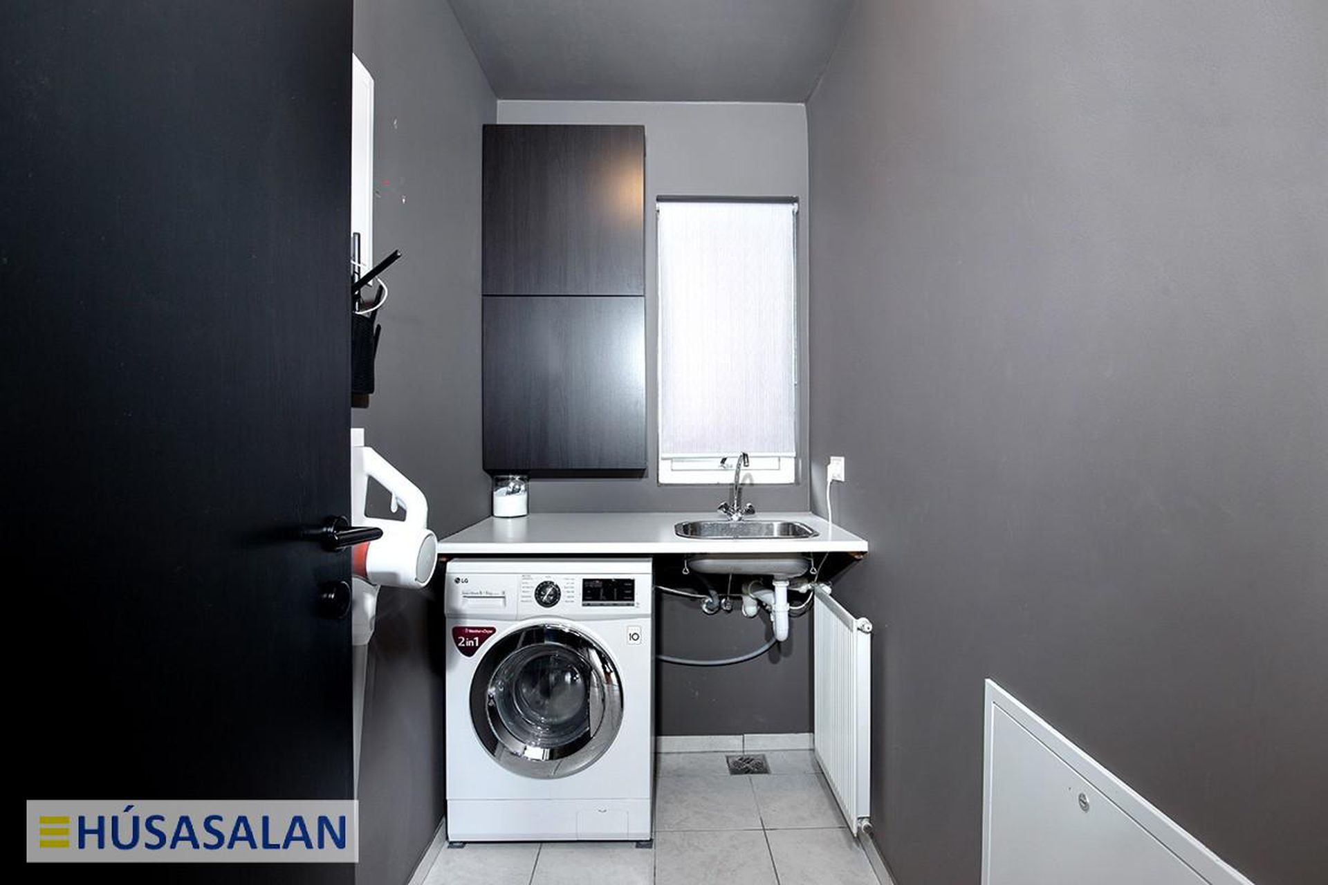 Eldhús er með nýlegri og fallegri innrétting, nýtt eldhústæki og blöndunartæki. Gott vinnu og skápapláss.