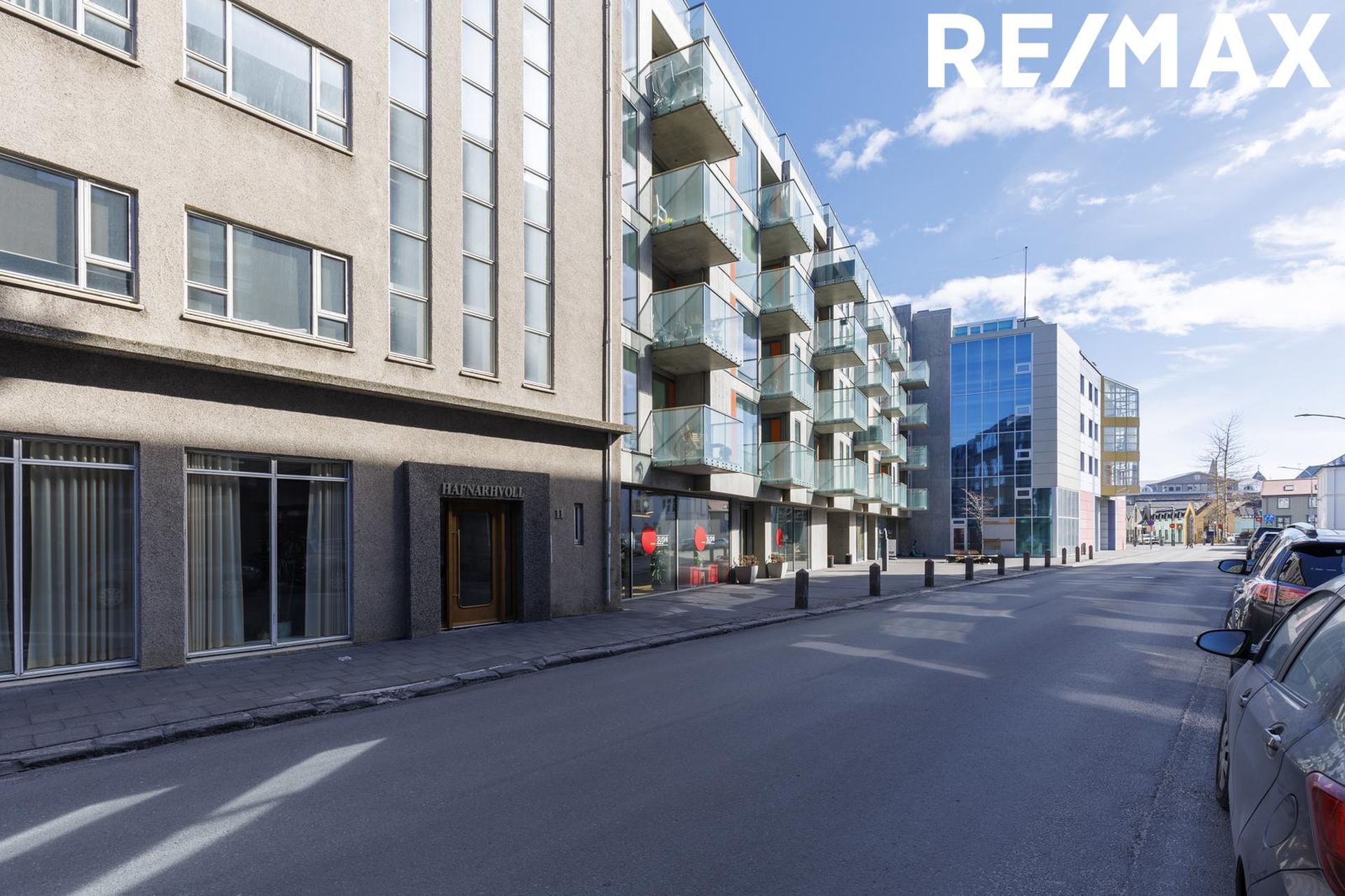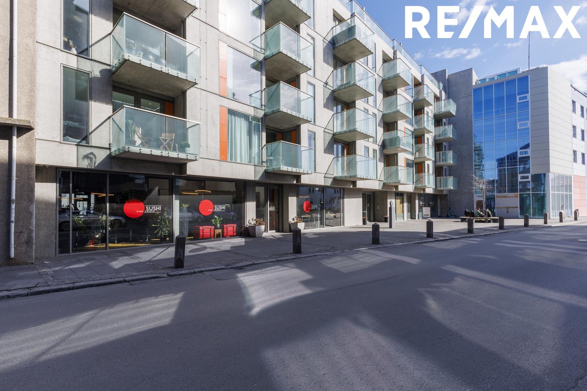 RE/MAX kynnir í einkasölu glæsilega 2 - 3 herb. íbúð á 5. hæð við Tryggvagötu 13 í hjarta miðborgarinnar. Íbúðin er í í göngufæri í miðborgina með fallegu útsýni til miðborgarinnar. Birt flatarmál íbúðarinnar er 75,2 fm og þar af er 2,4 fm geymsla í kjallara. 5,7 fm svalir eru í suður. Tryggvagata 13 er vandað lyftuhús sem var byggt 2017. Glæsilegar innréttingar og fataskápar frá HTH. Hágæða hreinlætistæki frá Laufen og blöndunartæki frá Kludi. Hitalögn í gólfi. Glæsilegir gólfsíðir gluggar. Mikil og góð einangrun er í húsinu.Nánari upplýsingar um eignina veitir Þorsteinn Ólafs lögg. fasteignasali í síma 842-2212, .Hjólastólaaðgengi er í allar íbúðir og sameignarrými hússins. Eignin skiptist í anddyrisgang, stofu, borðstofu og eldhús í alrými, baðherbergi, hjónaherbergi og baðherbergi. Ibúðin er í dag með einu svefnherbergi en möguleiki er að gera annað herbergi sem í dag er notað fyrir sjónvarp. Free@home stýrikerfi er fyrir ljós og myndavéladyrasíma. Snertilaust lyklaaðgengi er í allar íbúðir í húsinu, sameignarrými og útihurðir.Hér má skoða eignina í 3D:Nánari lýsing:Anddyri með góðum fataskáp frá HTH og parketi á gólfum í alrými.Opið eldhús er í stofu. Stofan er björt og rúmgóð með gólfsíðum gluggum og parketi á gólfi. Útgengt er út á suðursvalir úr stofunni. Á baðherbergi er upphengt salerni, innangeng sturta og flísar á gólfi og að hluta til á veggjum. Tengi er fyrir þvottavél og þurrkara. Hjónaherbergi er bjart með sérstöku fataherbergi og gólfsíðum gluggum. Sérstakt sjónvarpsrými er í íbúðinni sem hægt væri að breyta í annað herbergi.Geymsla er í sameign í kjallara. Hjóla- og vagnageymsla til daglegrar notkunar er á jarðhæð og langtíma hjóla- og vagnageymsla í kjallara.Inngangar í húsið eru frá Tryggvagötu og Geirsgötu og lyklalaust aðgengi er í sameign og í íbúð. Sameignin er glæsileg með marmara á gólfum á jarðhæð og sjónsteypu ásamt glerlistaverkum eftir Leif Breiðfjörð. Tveir stigagangar eru í húsinu með lyftum og stigahúsum með hljóðdempandi teppi, sjónsteypu og glerhandriðum. Úr skilalýsingu hússins þegar því var skilað fullbyggðu 2017:Frágangur utanhúss:Útveggir eru staðsteyptir og einangraðir að innan. Húsið verður með sjónsteypuáferð að utan og er steypa varin með þýskum gæða efnum. Notaður er lítt vatnsdrægur norskur sandur í steypu útveggja til að draga úr vatnsdrægni útveggja.Þök eru með nettum halla að þakniðurföllum, lögð rakavarnarlagi, einangruð og klædd með öndunarþakdúk af vandaðri gerð.Svalir á 2. til 5. hæð eru steyptar og svalagólf slípuð og vatnsvarin. Svalahandrið eru úr hertu gleri og led lýsing í handlistum sem lýsir upp glerhandrið að ofan. Gólf þaksvala á 6. hæð verða klædd viði, þar verður handrið úr hertu gleri og viðarveggur sem aðskilur milli svala, hæð veggs að sunnaverðu 1.7 m og að norðan 1.2 m.Gluggar, útihurðir og gler eru af vandaðri gerð til að tryggja sem minnst viðhald. Gluggar á jarðhæð eru álkerfisgluggar. Gluggar á efri hæðum eru timbur/ál-gluggar. Að utan er ál í gráum lit og breytilegir litir í lóðréttum böndum við opnanleg fög, heitir litir á suðurhlið og kaldir á norðurhlið. Gler er af gerðinni Klima Plus, samlímt/hert öryggisgler og rúður mis þykkar til hljóðdempunar. Ábyrgð framleiðanda á gluggum og gleri er samkvæmt skilmálum Glerborgar. Gluggar í íbúðum á 2.-6. hæð eru gólfsíðir með opnanlegum fögum og hljóðdempandi loftunarristum. Allt gler gefur minnst 41 dB hljóðdempun.Lóð er 2 m breið sunnan húss og tengist Borgartorgi og er hvort tveggja hannað af landslagsarkitekt. Á lóðinni er snjóbræðsla, hellur og listaverk og á Borgartorgi er snjóbræðsla, hellur, gróður og bekkur. Frágangur íbúða innanhúss:Íbúðir eru með gólfsíðum timbur/ál gluggum, gluggar eru málaðir hvítir að innan og klæddir gráu áli að utan. Loftunarristar gefa 48 dB hljóðdempun í opinni stöðu og skulu vera opnar til að koma í veg fyrir undirþrýsting í íbúðum. Á öllum íbúðum eru svalir. Gólf. Íbúðir eru afhentar fullbúnar með gólfefnum til að tryggja að alls staðar verði frágangur í samræmi við hljóðhönnun. Á votrýmum eru vandaðar flísar á gólfum og undir þeim er fullkomin rakavörn (dúkur í sturtum, kvoða annars staðar og kantborðar í öllum hornum). Á öðrum rýmum er vandað krosslímt viðarparket, nema í íbúðum 0202 og 0203, þar eru flísar á öllum gólfum.Veggir. Útveggir eru einangraðir að innan, múrhúðaðir, sparslaðir með rakaheldu gifsi, grunnmálaðir og málaðir með rakaheldri málningu. Léttir milliveggir eru hlaðnir úr Ytong steinum og lagnaleiðir eru klæddar með rakaheldu gifsi. Á flísalögðum veggjum á böðum er gengið frá vönduðu undirlagi til þéttingar (dúkur í sturtum, kvoða annars staðar og kantborðar í hornum). Flísar og fúga eru af vandaðri gerð. Málaðir veggir í votrýmum eru sparslaðir með rakaheldu sparsli og grunnaðir og málaðir, allt efni er rakahelt. Í almennum rýmum eru veggir og loft sandsparslað, grunnað og málað með hálfmattri málningu. Öll málning er af bestu fáanlegum gæðum frá Málningu ehf til að tryggja létt þrif. Allir veggir eru málaðir hvítir.Loft eru slípuð, sandspörsluð, grunnuð og máluð.Innihurðir. Hljóðdempandi hurðir frá íbúðum að göngum eru lakkaðar gráar, hljóðdempun er 36 dB, brunavörn EI 30-CS og hurðapumpa er felld inn í hurð að ofan. Hurðir og rennihurðir innan íbúða eru sprautulakkaðar í hvítum lit. Allar hurðir í íbúðum og á göngum eru sérsmíðaðar hjá Víkurási og eru hærri en venja er. Innréttingar:Í öllum innréttingum er vandað innvols og hágæ