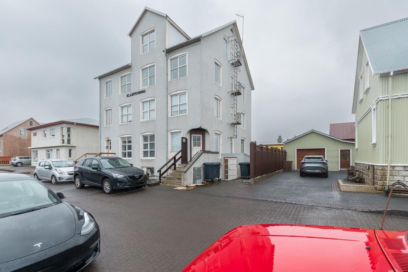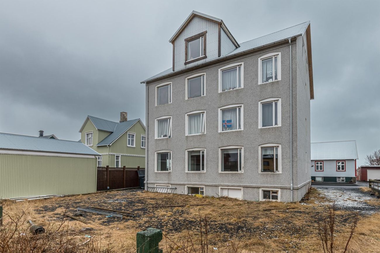 FÁÐU SENT SÖLUYIRLIT YFIR EIGNINA HÉR.Nánari lýsing:Aðkoma: Steyptar tröppur að inngangi í húsið á 1. hæð og svo stigi upp að íbúð á 3. hæð hússins.