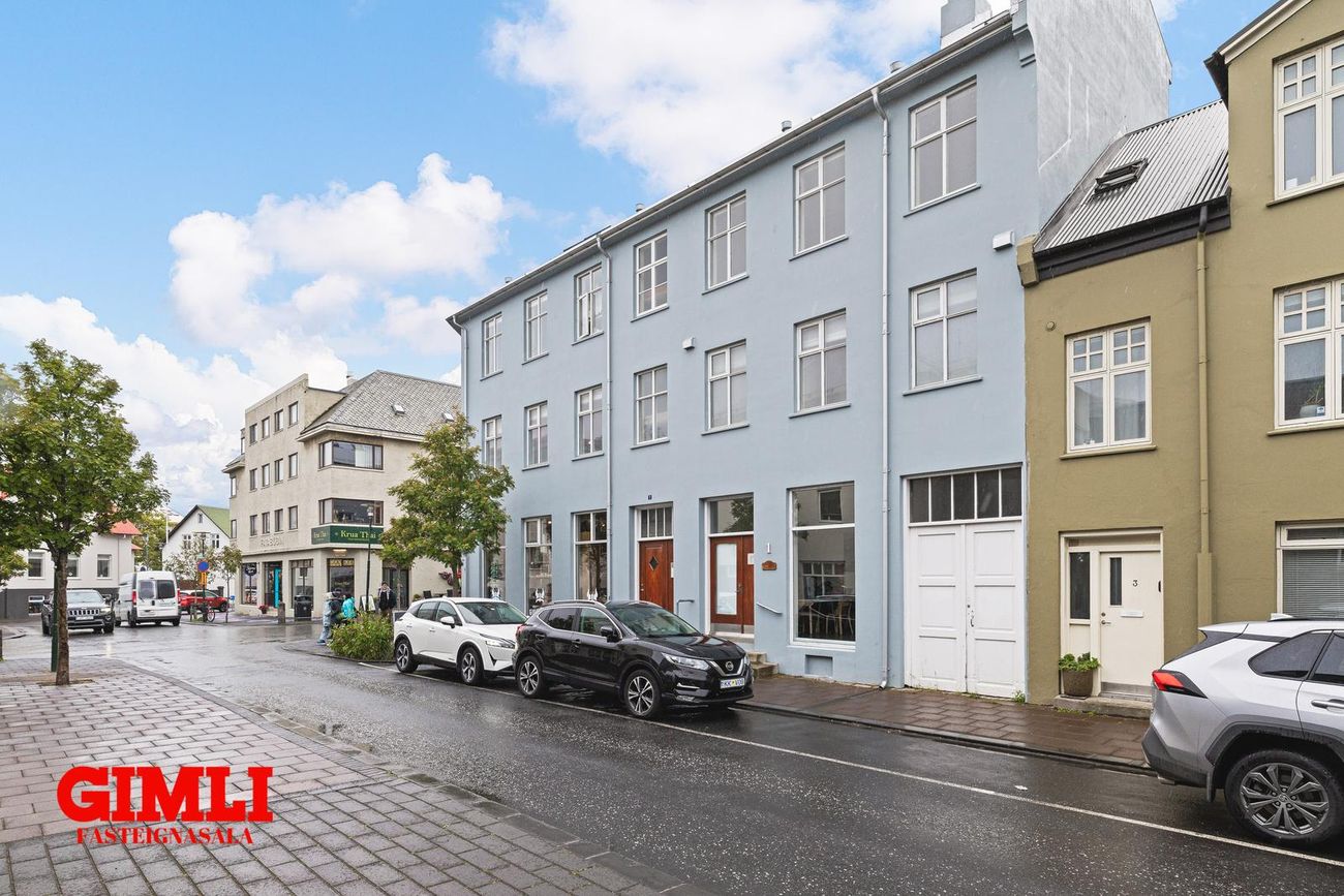 Þetta einstaklega björt og vel skipulögð eign á besta stað í miðbænum sem getur verið laus við kaupsamning.