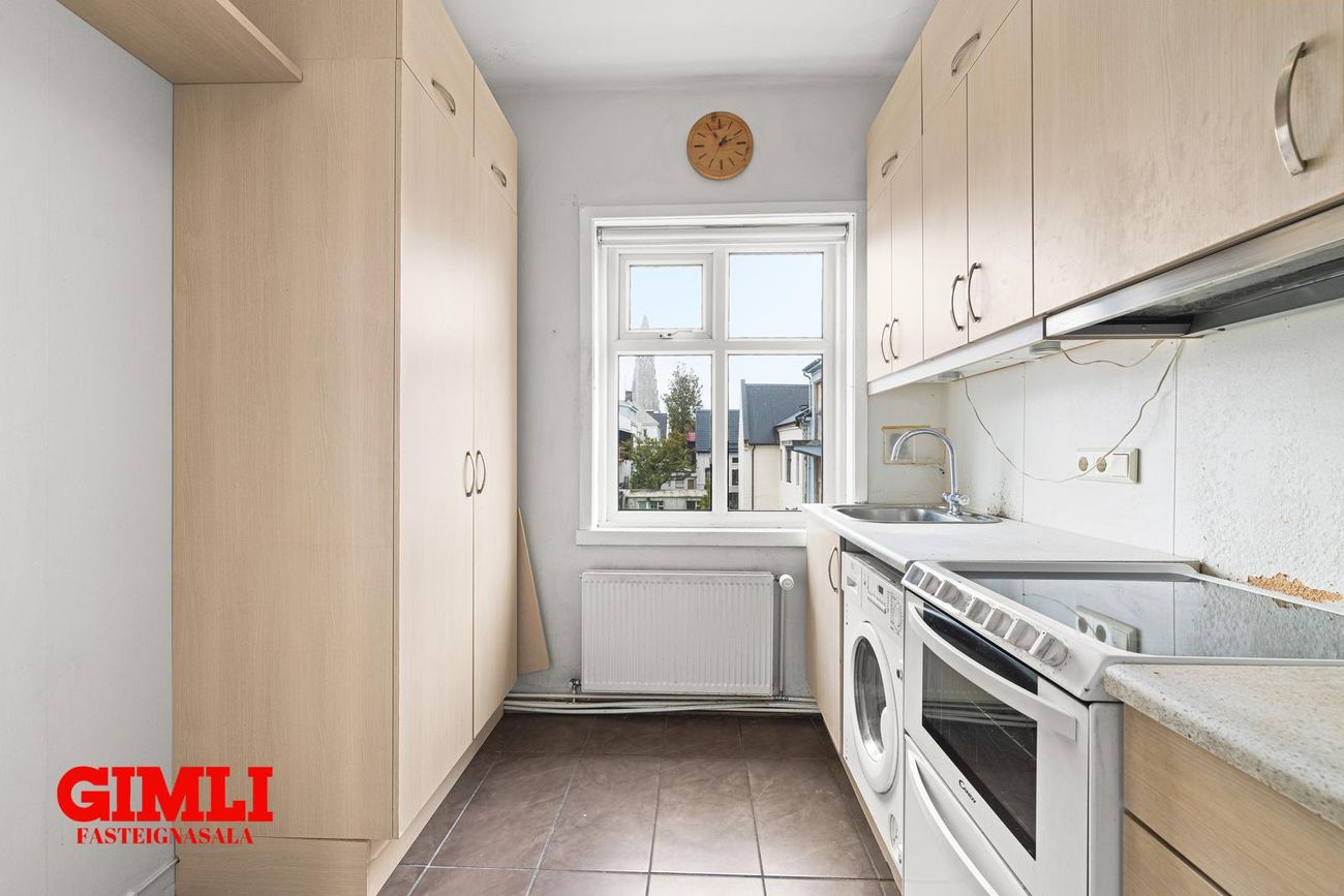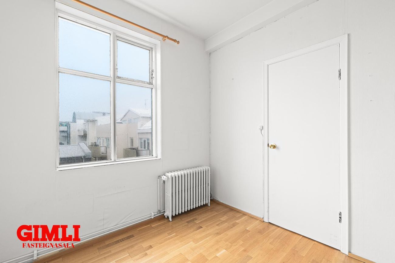 Gimli fasteignasala og Sigþór Bragason lögg.fasteignasali sími 899 9787 kynna: Björt og vel skipulögð 2ja herbergja íbúð á þriðjuhæð á horni Skólavörðustígs og Týsgötu. Hús mikið tekið í gegn og mjög glæsilegt. Á einfaldan hátt er hægt að bæta við svefnherbergi og halda góðu skipulagi á eigninni. Nánari lýsing:Komið inn bjart