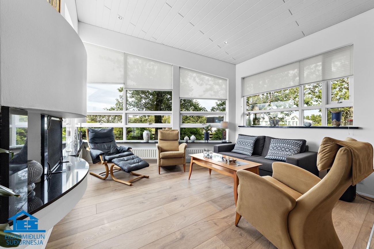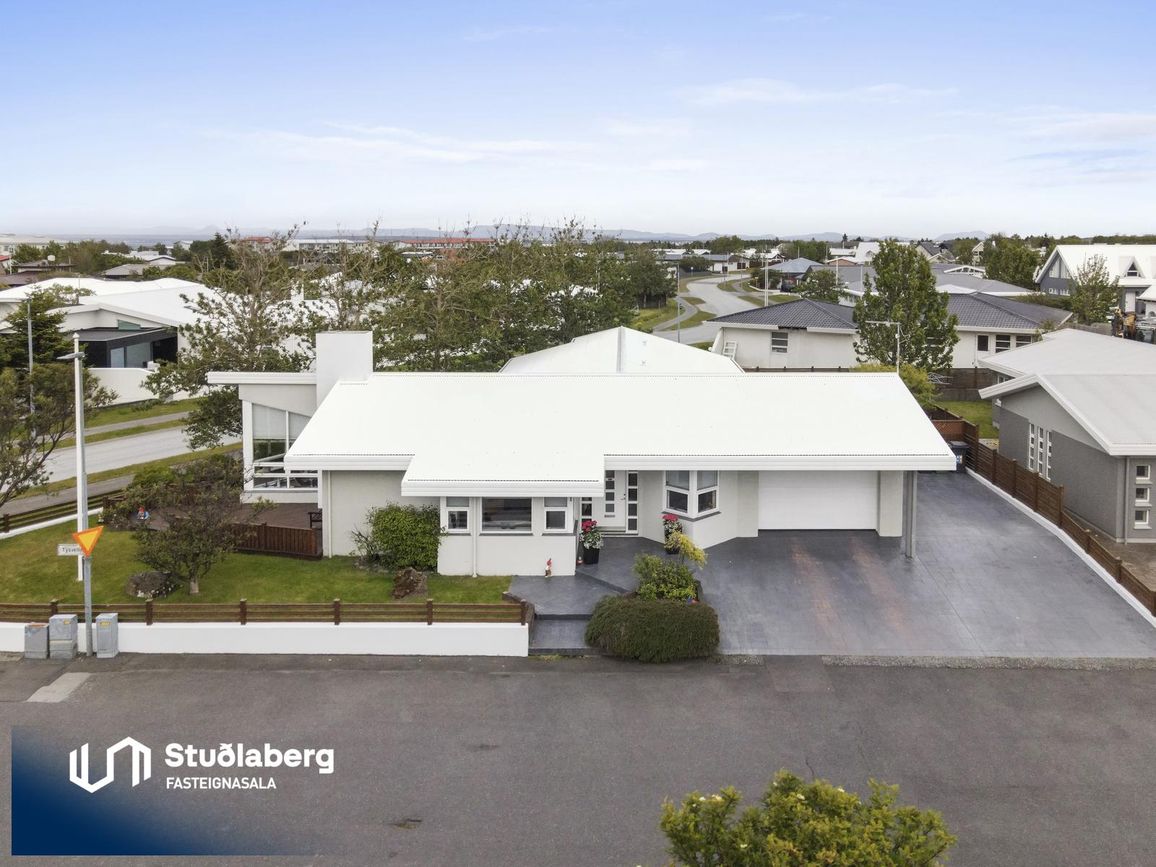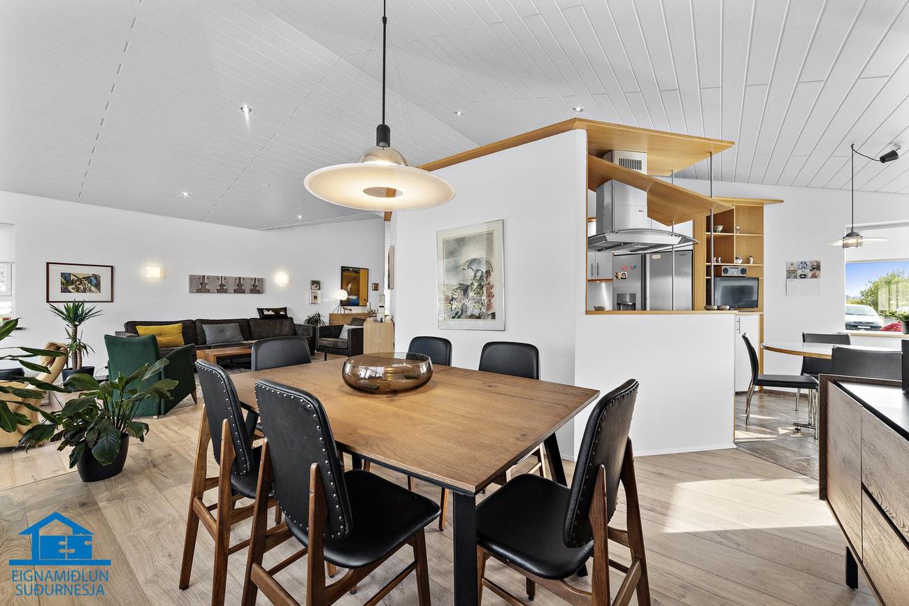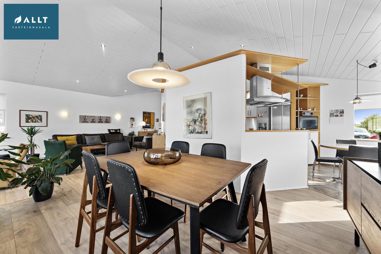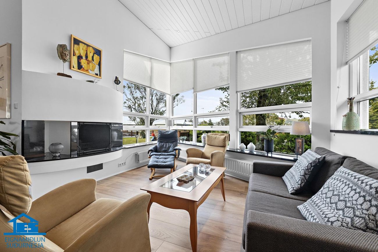 Hús skiptist í forstofu, þrjú barnaherbergi (tvö sameinuð), hjónaherbergi með baðherbergi, eldhús, borðstofu, tvær stofur, sjónvarpshol og þvottahús. Alrými loft með innbyggðri loftalýsingu.