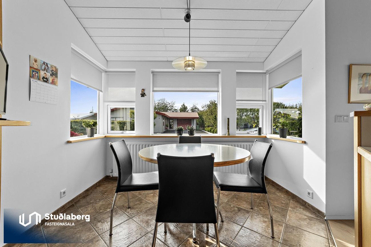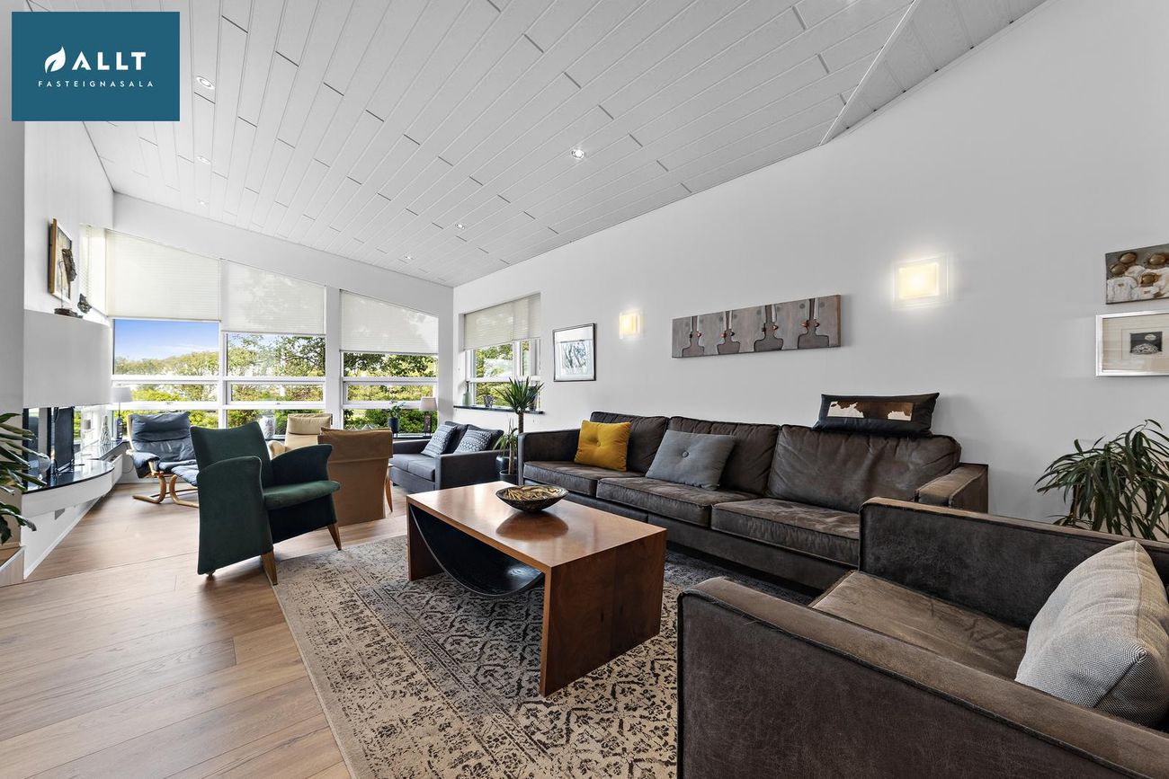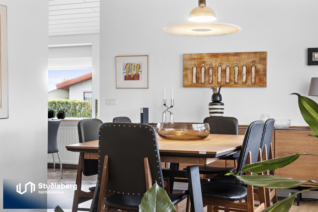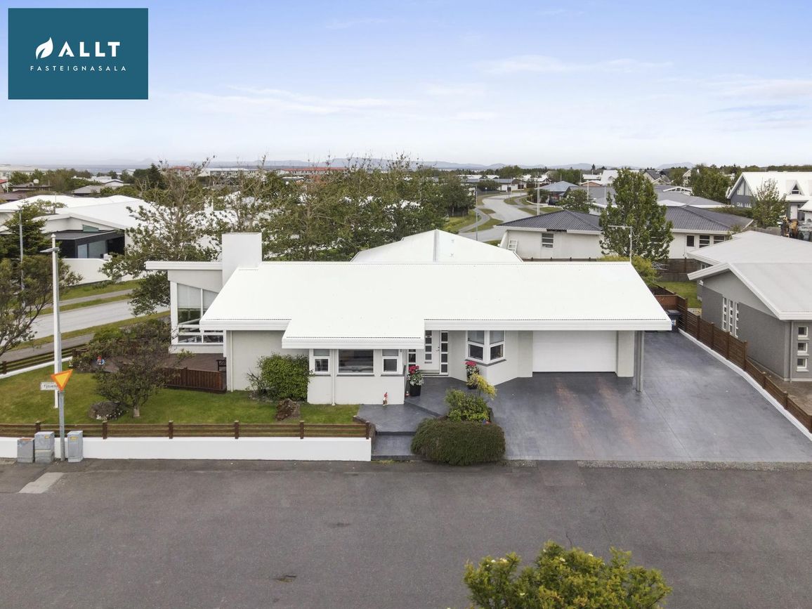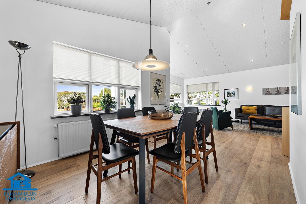 Hús skiptist í forstofu, þrjú barnaherbergi (tvö sameinuð), hjónaherbergi með baðherbergi, eldhús, borðstofu, tvær stofur, sjónvarpshol og þvottahús. Alrými loft með innbyggðri loftalýsingu.