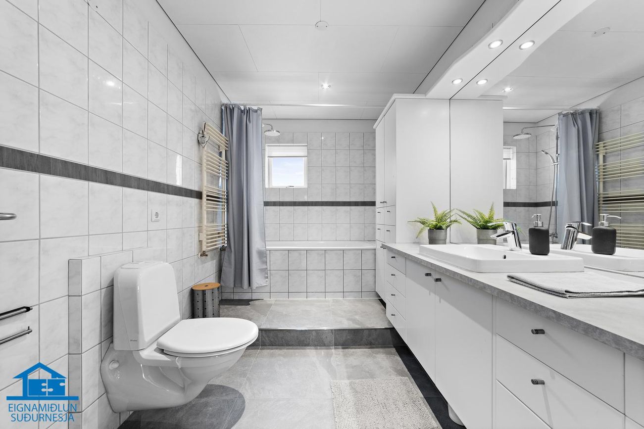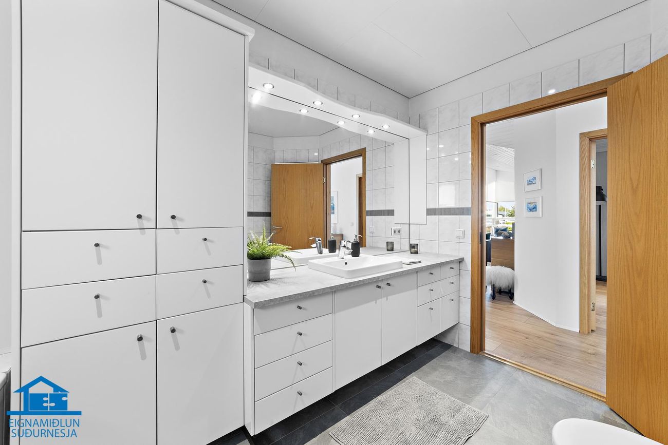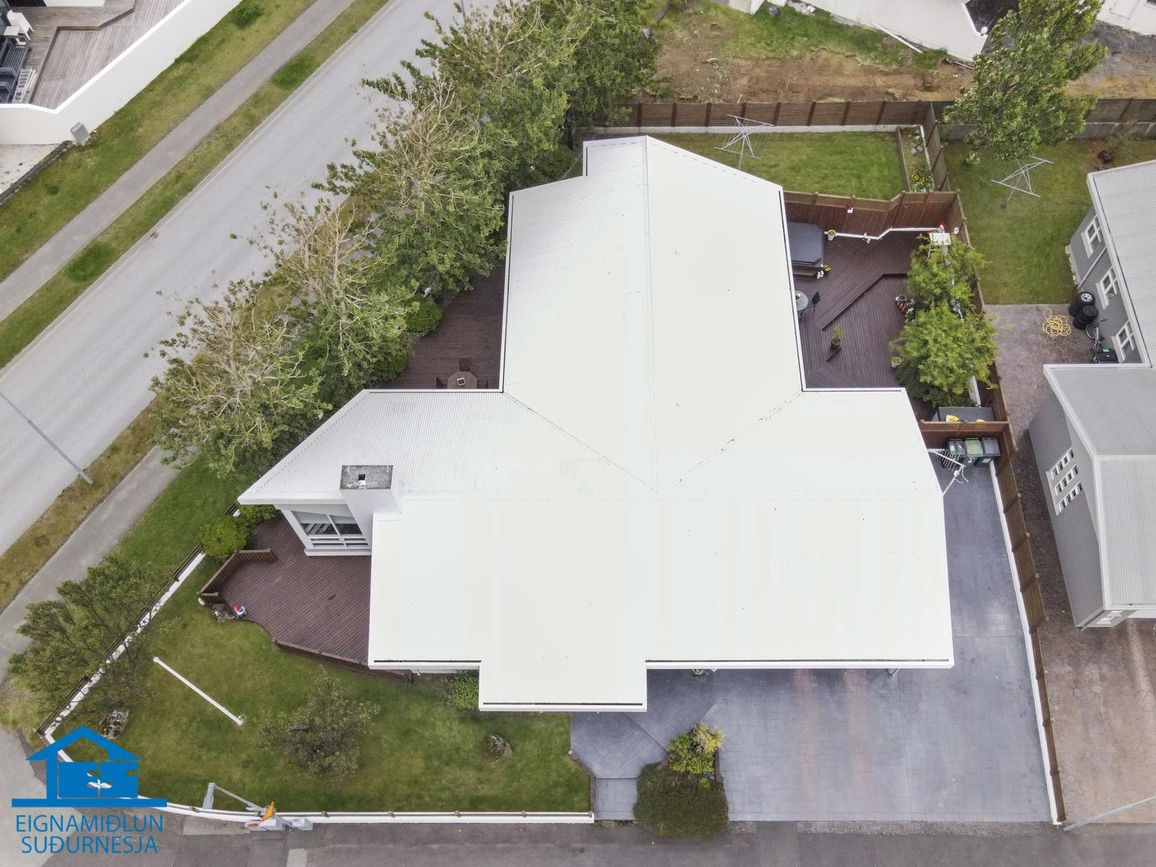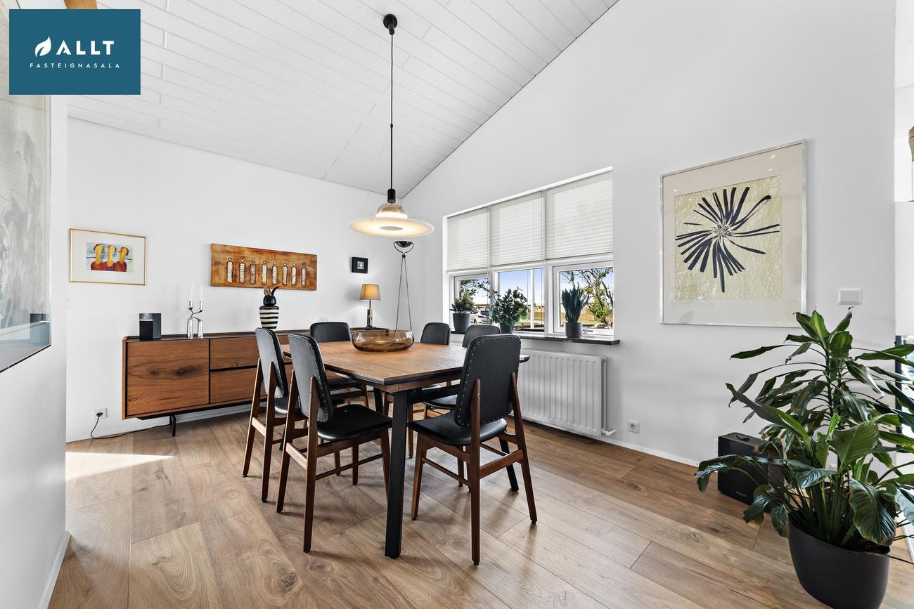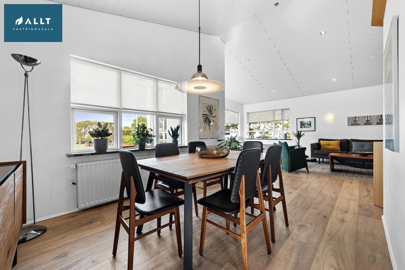 Hús skiptist í forstofu, þrjú barnaherbergi (tvö sameinuð), hjónaherbergi með baðherbergi, eldhús, borðstofu, tvær stofur, sjónvarpshol og þvottahús. Alrými loft með innbyggðri loftalýsingu.