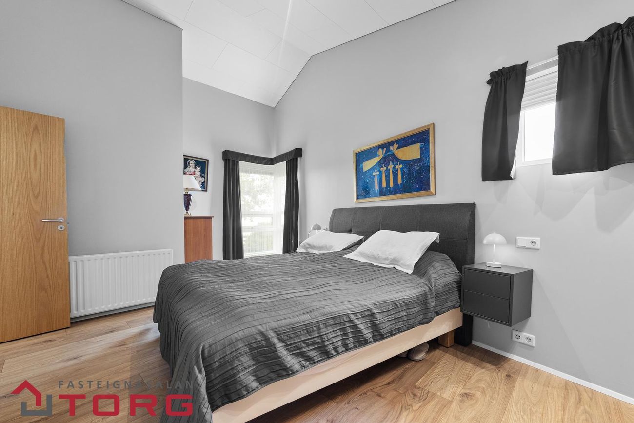 Svefnherbergin eru fimm, öll með parketi og fataskápum.