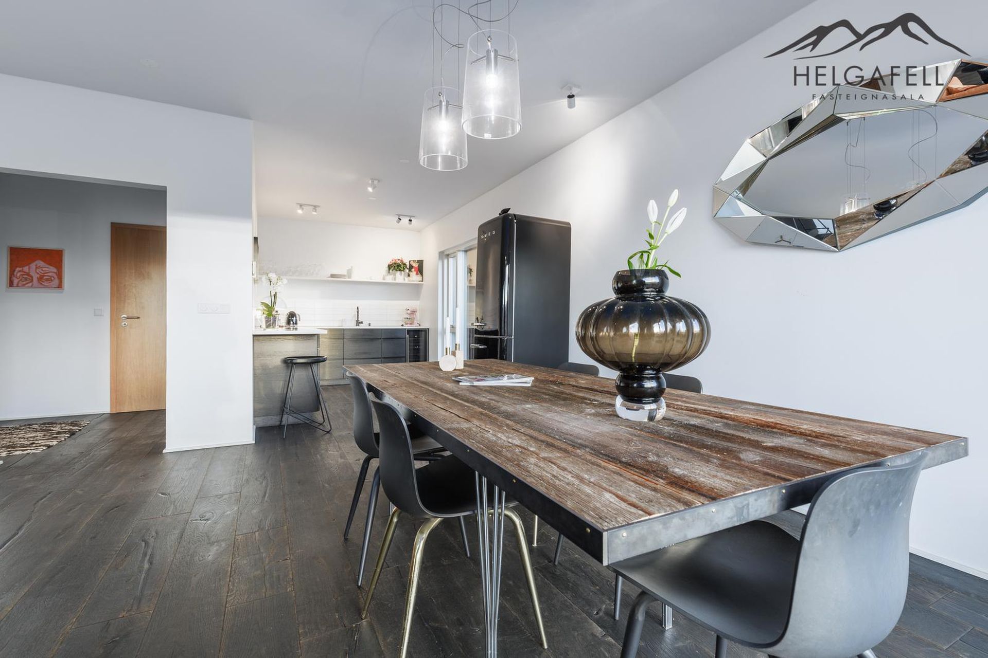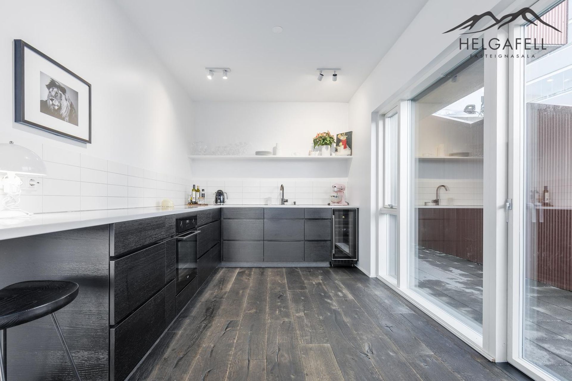 Kristján Þór Sveinsson hjá Helgafell fasteignasölu kynnir:Nýleg glæsileg fjögurra herbergja íbúð á jarðhæð í fjórbýlishúsi neðst í Úlfarsárdal, 113 Reykjavík. Húsið var byggt 2018 og stendur á fallegum stað.Eignin er á jarðhæð, merkt 0001 og skráð 167,8 fm., þar af er 23,5 fm. bílskúr.ÝTTU HÉR TIL FÁ SENT SÖLUYFIRLIT Nánari lýsingKomið er úr sameign inn í forstofu með góðum skápum frá HTH.Viðarparket frá Parka á gólfum, flísar á baðherbegi og þvottahúsi.Úr forstofu er komið inn í aðalrýmið sem er bjart og rúmgott. Útgengi á tæplega 60 fm. viðarpallur til suðurs, smíðaður úr Lerki.Eldhús með sérsmíðari innréttingu frá Rafha, flísar að hluta á vegg, steinborðplata frá Rein, niðurfellt span helluborð og niðurfeldur vaskur.Uppþvottavél og vínkælir fylgja með.Úr eldhúsi er útgengi á hellulögn til austurs. Björt borðstofa / stofa með gólfsíðum gluggum.Þrjú rúmgóð svefnherbergi, tvö með fataskápum. Flísalagt baðherbergi með upphengdu salerni, rúmgóðum sturtuklefa, frístandandi baðkari og innréttingu frá HTH. Svört blöndunartæki frá Tengi.Þvottahús / geymsla er innst á gangi. Flísalagt með skolvaski, hillum og skápum og tengi fyrir þvottavél og þurrkara.23,5 fm. bílskúr merktur 0105. Gott hillu og borðpláss, epoxy á gólfi, skápur og vaskur. Bílskúrshurðaopnari.Hjóla- og vagnageymsla í sameign.Anddyri hússins er flísalagt og stigahús teppalagt. Gluggar eru ál-tré VELFAC gluggar, málaðir hvítir að innan. Gólfhiti er í íbúðinni, en ofnakerfi í sameign, geymslu og bílskúr.Loftræsting, úr gluggalausum rýmum, er með vélrænu útsogi upp úr þaki eða geymslum í kjallara og bílskúrum.Húsið er staðsteypt að öllu leiti, tvær hæðir og jarðhæð, einangrað að utan og klætt með álklæðningu. Snjóbræðsla er undir stétt framan við og niður með húsi.Gullfalleg íbúð á eftirsóttum stað í Úlfarsárdal. Húsið stendur neðst í dalnum með ósnortna náttúru við lóðarmörk.Stutt í leik- og grunnskóla, Borgarbókasafn, Dalslaug og íþróttasvæði FRAM.Nánari upplýsingar veita:Kristján Þór Sveinsson, löggiltur fasteignasali, s: 898-6822 / ----------------------------------------------------------Heimasíða Helgafells fasteignasöluFacebook síða Helgafells- Hafðu samband og við gerum söluverðmat á eign þinni, þér að kostnaðarlausu -Gjöld sem kaupandi þarf að standa straum af vegna kaupa á fasteign:1. Stimpilgjald af kaupsamningi - 0,8% af fasteignamati fyrir einstaklinga (0,4% fyrir fyrstu kaupendur) og 1,6% fyrir lögaðila.2. Þinglýsingargjald af kaupsamningi, veðskuldabréfi, mögulegu veðleyfi o.fl. - 2.700 kr. af hverju skjali.3. Lántökugjald lánastofnunar - almennt í kringum 50þ., oft lægra eða ekkert lántökugjald fyrir fyrstu kaup. Nánari upplýsingar á heimasíðum lánastofnana.4. Þjónustusamningur milli kaupanda og fasteignasölu - Kr. 79.980,- m/vsk.Helgafell fasteignasala bendir kaupendum á ríka skoðunarskyldu sem kveðið er á í lögum um fasteignakaup nr.40/2002. Skorað er á kaupendur að kynna sér vandlega ástand fasteigna og nýta til þess aðstoð sérfræðinga. Sömuleiðis er bent á upplýsingaskyldu seljanda samanber 26.gr. Laga nr.40/2002 um fasteignakaup og 25.gr. laga nr.26/1994 um fjöleignarhús. Seljanda er bent á að kynna sér tilvitnaðar lagagreinar.