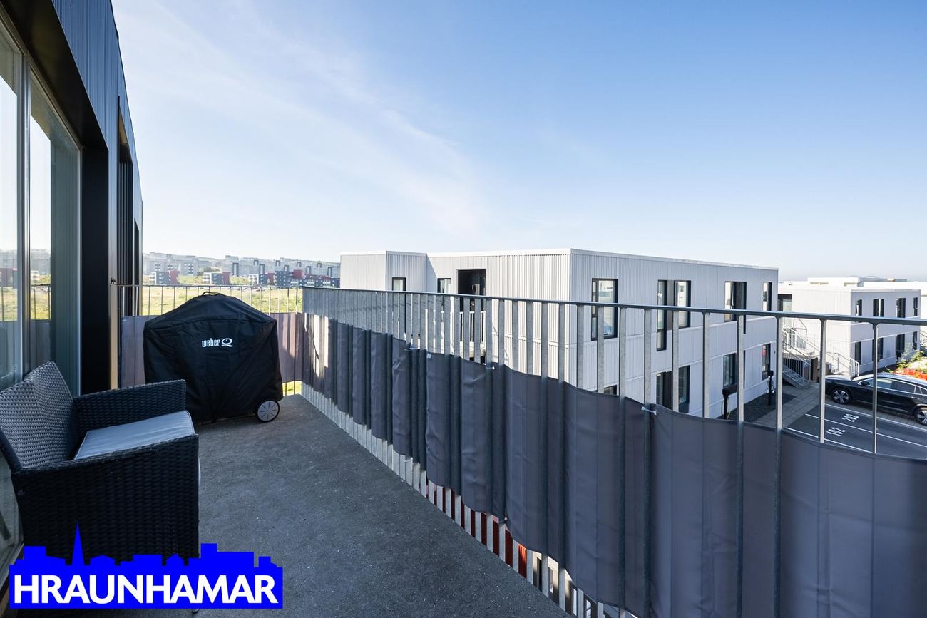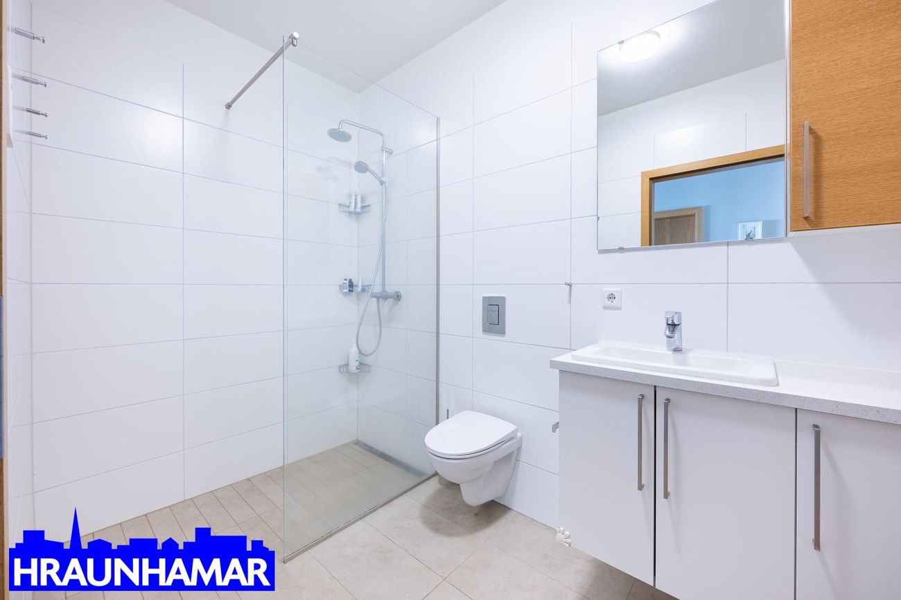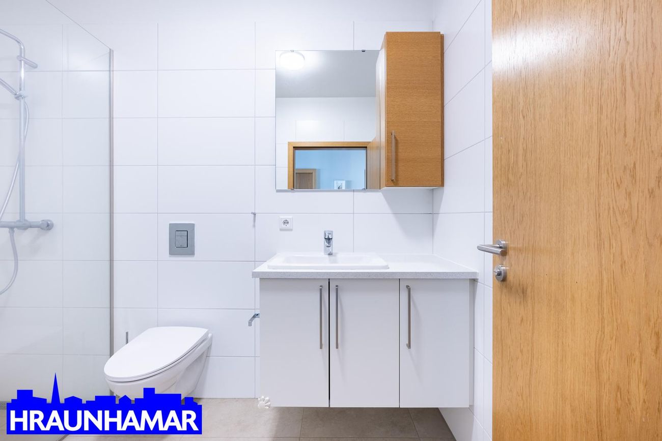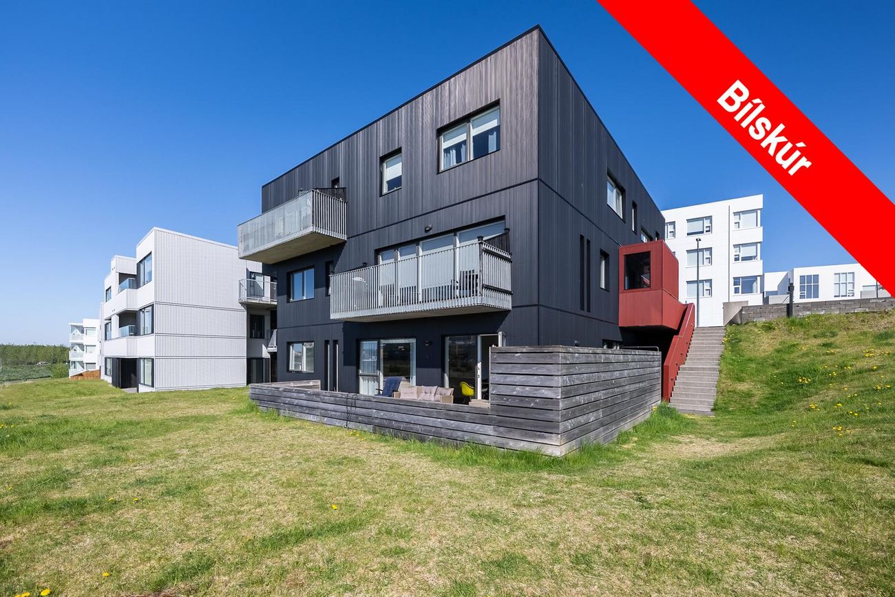 hjóla- og vagnageymsla. Gólfhiti er í íbúðinni en ofnakerfi í sameign, geymslu og bílskúr.