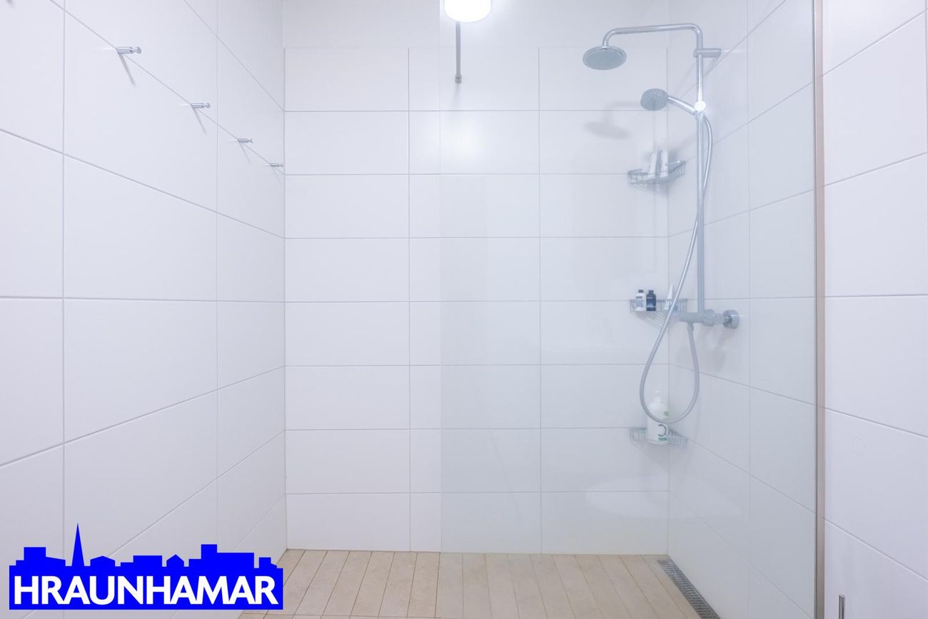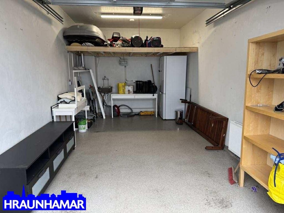 Bílskúr með rafmagnsopnara og heitu og köldu vatni.