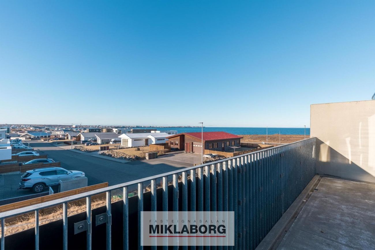 Stórar svalir með fallegu útsýni yfir Faxaflóa.