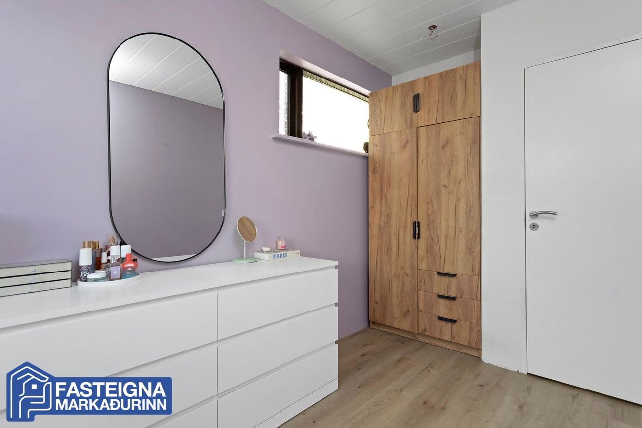 Ein hæð með forstofu, þvottaherbergi, eldhús, stofu, borðstofu, þremur barnaherbergjum, hjónaherbergi og baðherbergi.