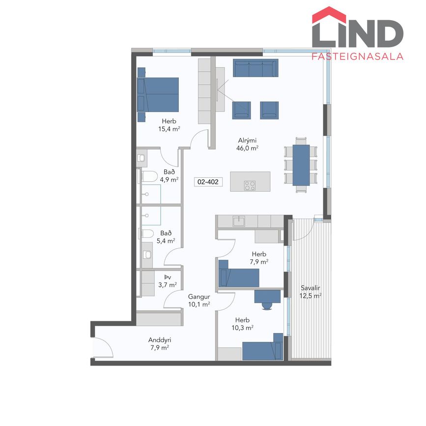 | 3 | 125,80 m² | 119.900.000 kr. 3. apríl 2026 | - - |