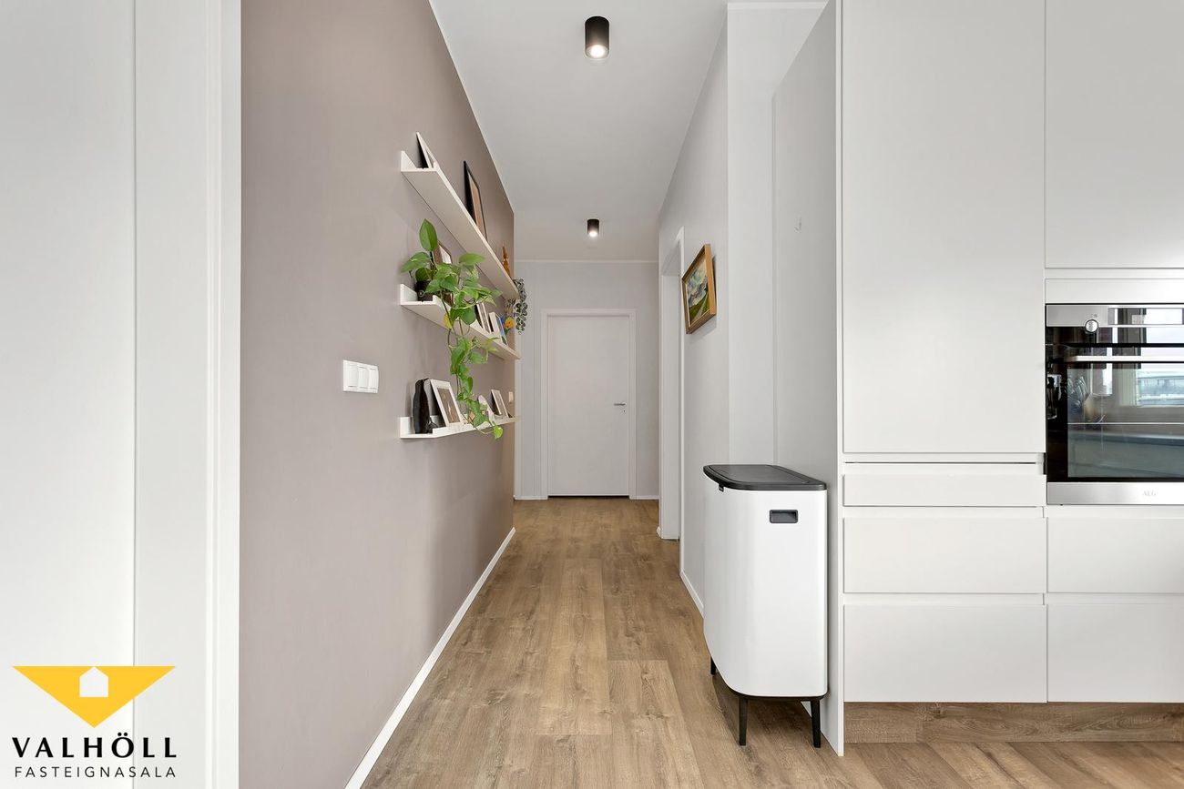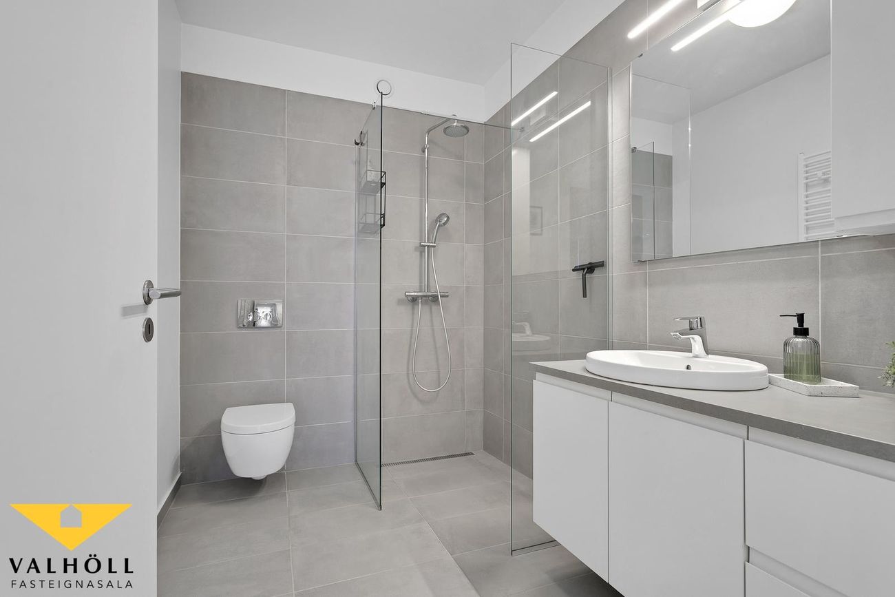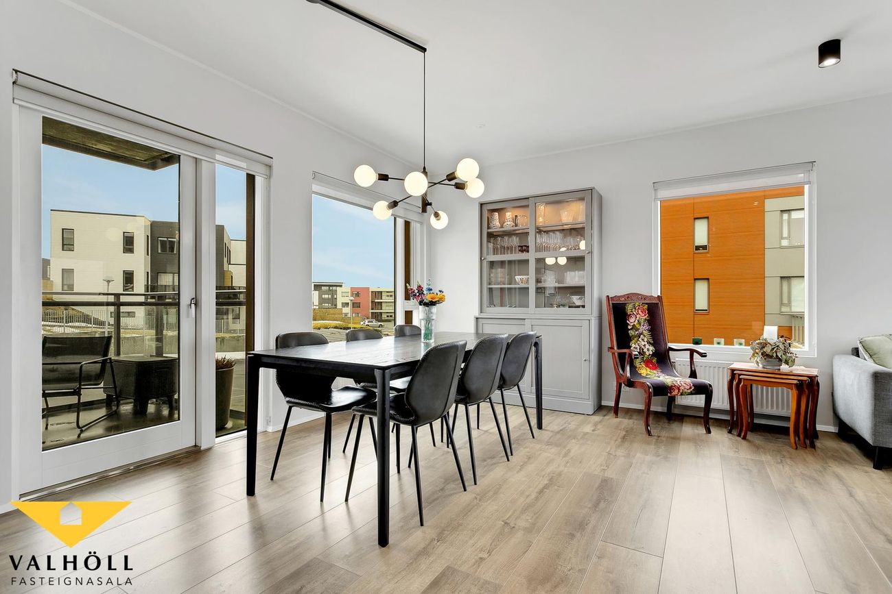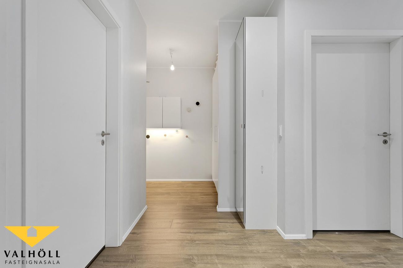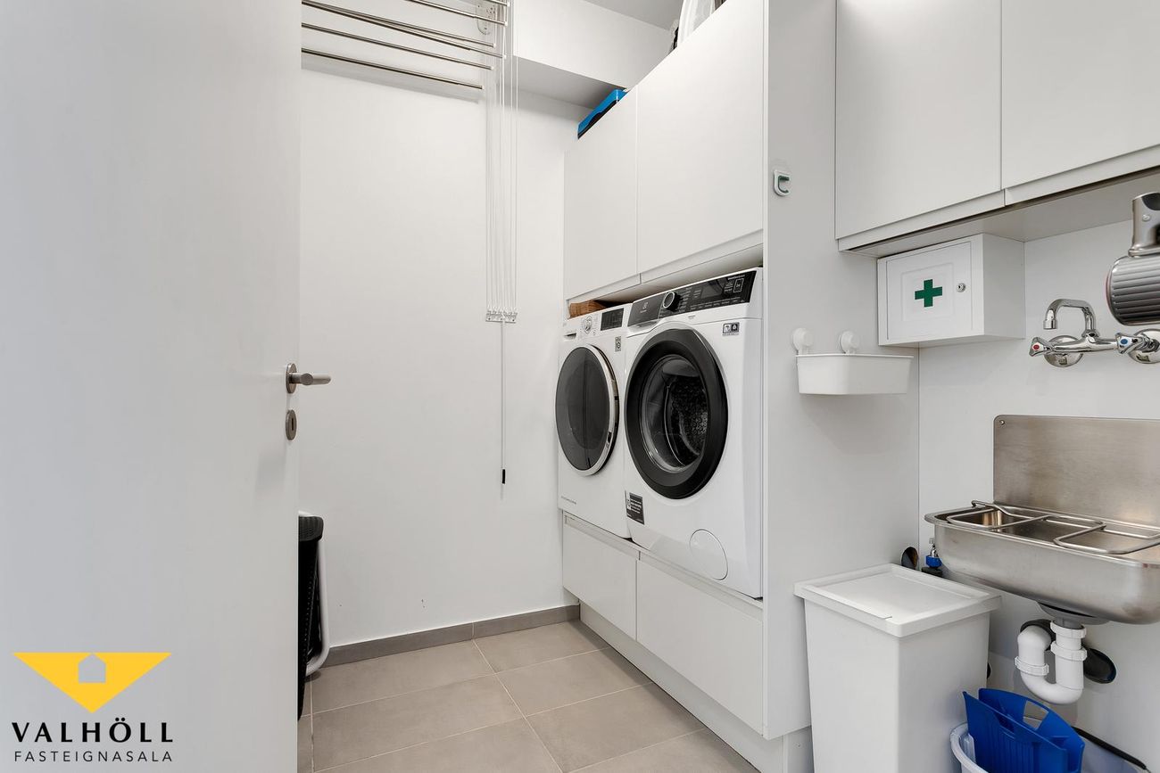 Þvottahús er innan íbúðar og er rúmgott með góðu skápaplássi.