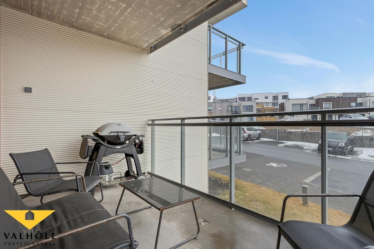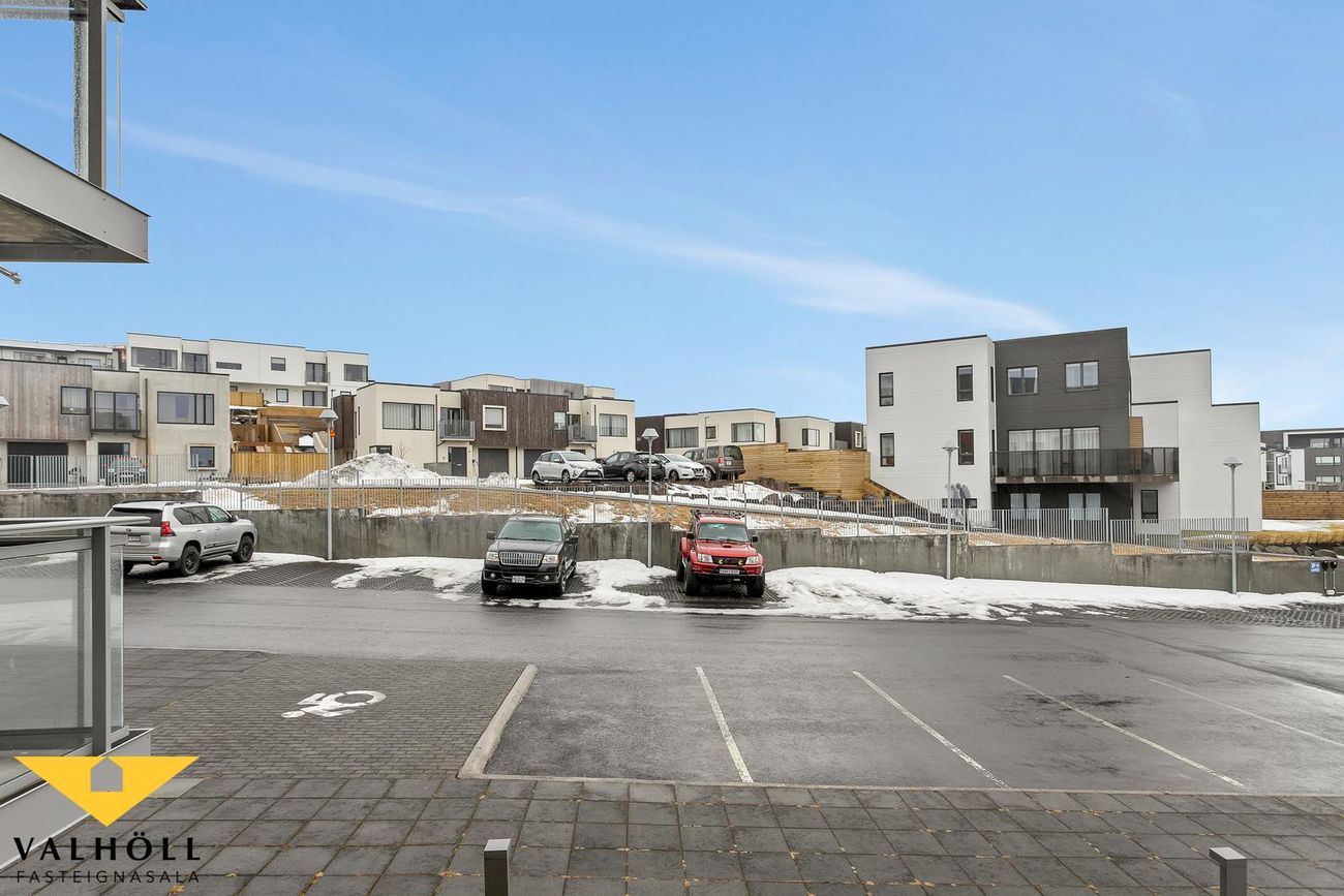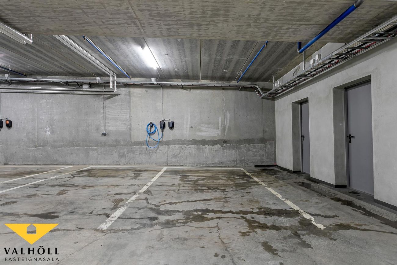 8 í þessum stigagangi. Byggingarnar eru tengdar með bílageymslu fyrir 28 bíla neðanjarðar. Í bílageymslu er gert ráð fyrir mögulegri tengingu rafbíla í öllum bílastæðum og er leigu hleðslustöð frá On tengd núna við íbúð 201.