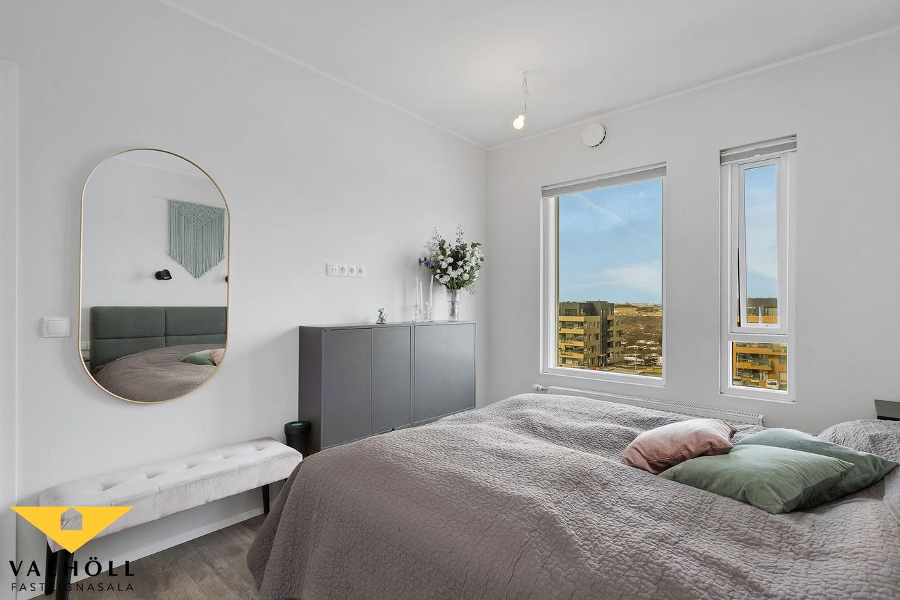 Opinn og björt íbúð með flottu útsýni. Stigagangur er mjög snyrtilegur.
