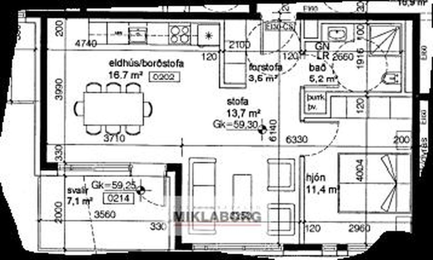 | 3 | 107,40 m² | 89.500.000 kr. 26. mars 2025 | 89.500.000 kr. 8. maí 2025 |