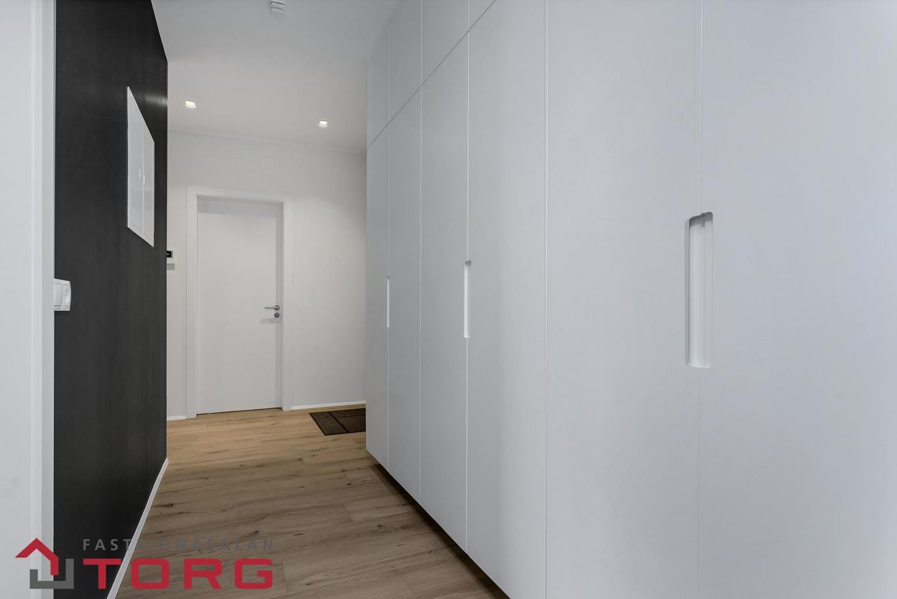 er með parket á gólfi og fataskápum sem ná upp í loft. Á þeim gangi eru tvö svefnherbergi.