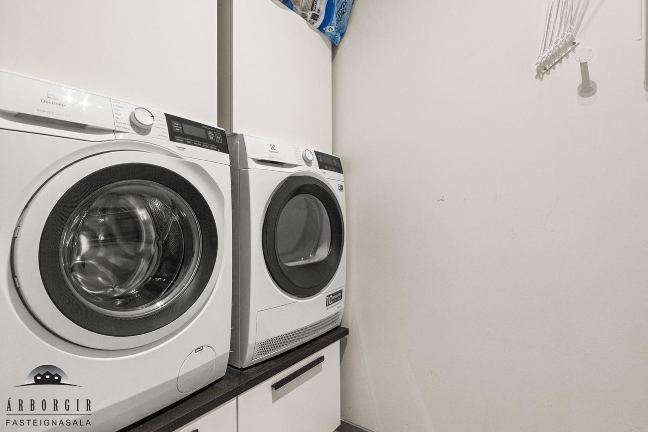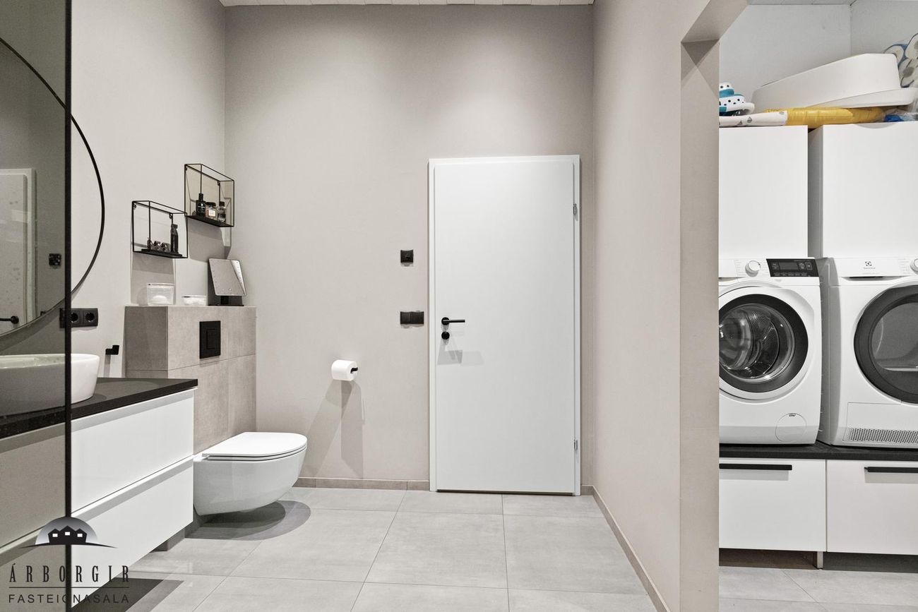 Þvottahús er innaf baðherbergi, flísar eru á gólfi og þar er góð innrétting.