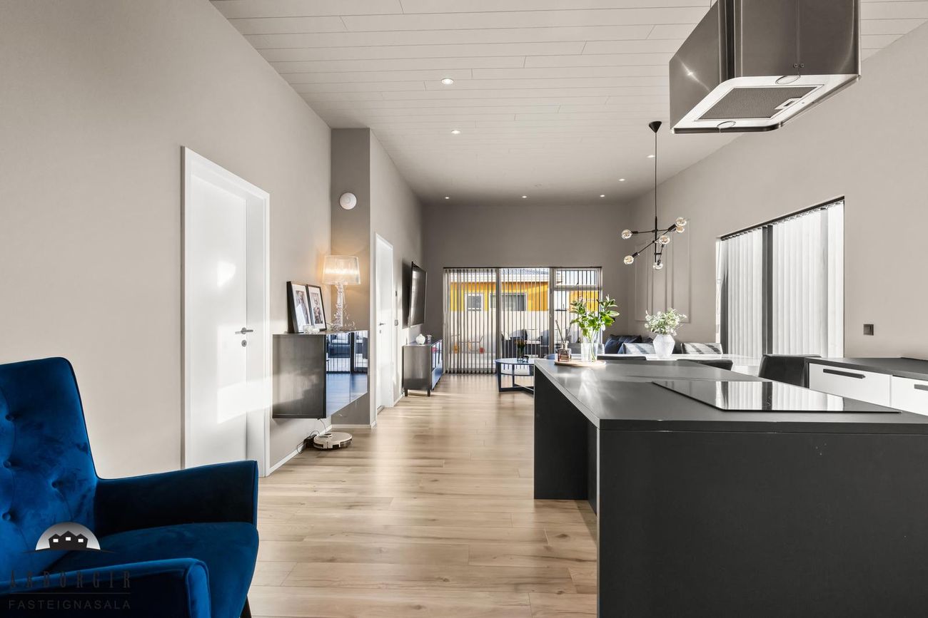 Heildarstærð eignarinnar er 115,5m2 og skiptist hún skv teikningu í forstofu, 2 rúmgóð svefnherbergi, baðherbergi stofu og eldhús auk 21,8m2 sambyggðs bílskúrs.