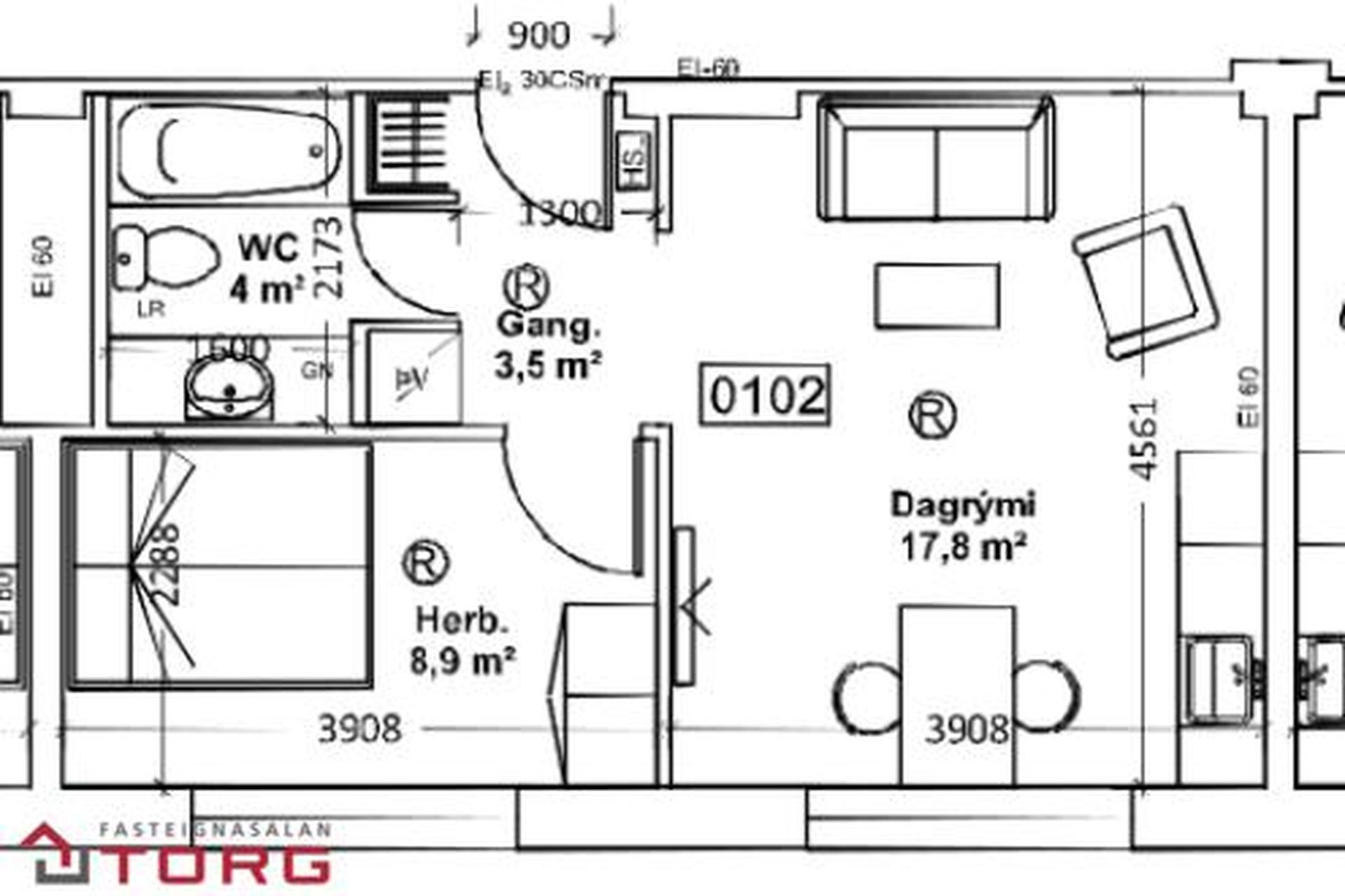 | 2 | 45,20 m² | 24.900.000 kr. 16. ágúst 2023 | 23.920.000 kr. 3. október 2023 |