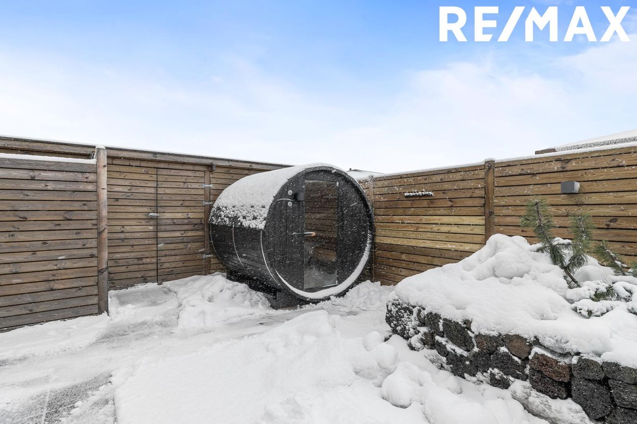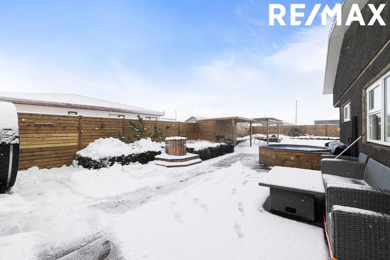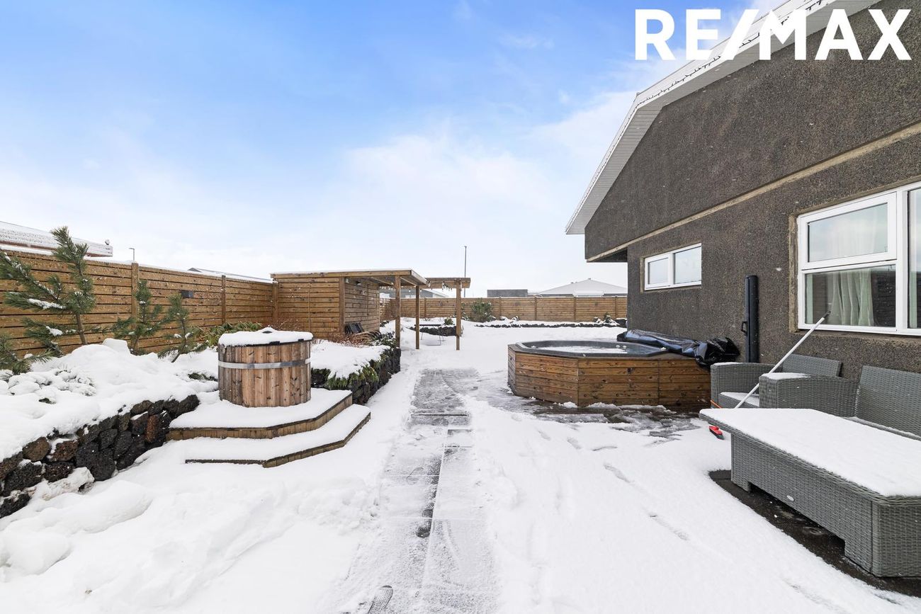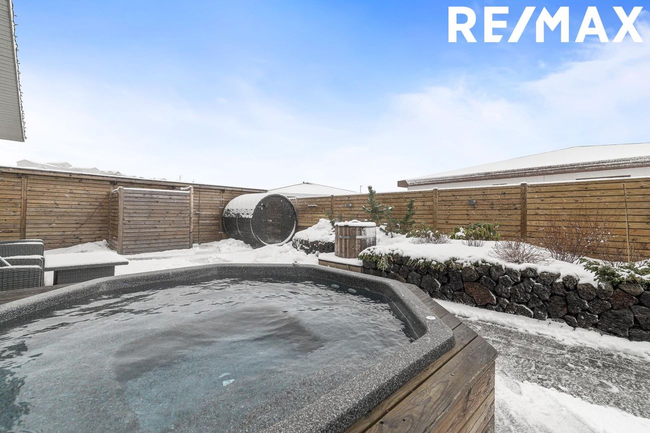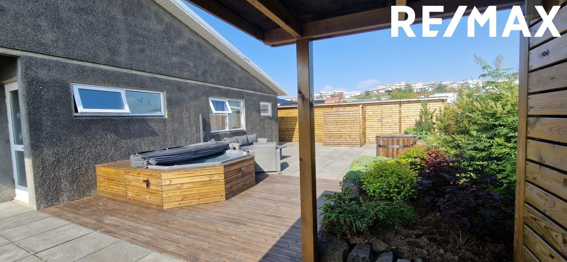 Eignin hefur verið mikið endurbætt og býður upp á glæsilega útiaðstöðu með nýlegri og afar vandaðri verönd sem hönnuð var af Birni Jóhannssyni landslagsarkitekt hjá URBAN BEAT. Hönnunin tekur mið af þægindum allrar fjölskyldunnar og þar má finna heitan pott, kaldan pott, sauna, tvær kaldar geymslur og skjólveggi sem veita skjól fyrir helstu vindáttum.