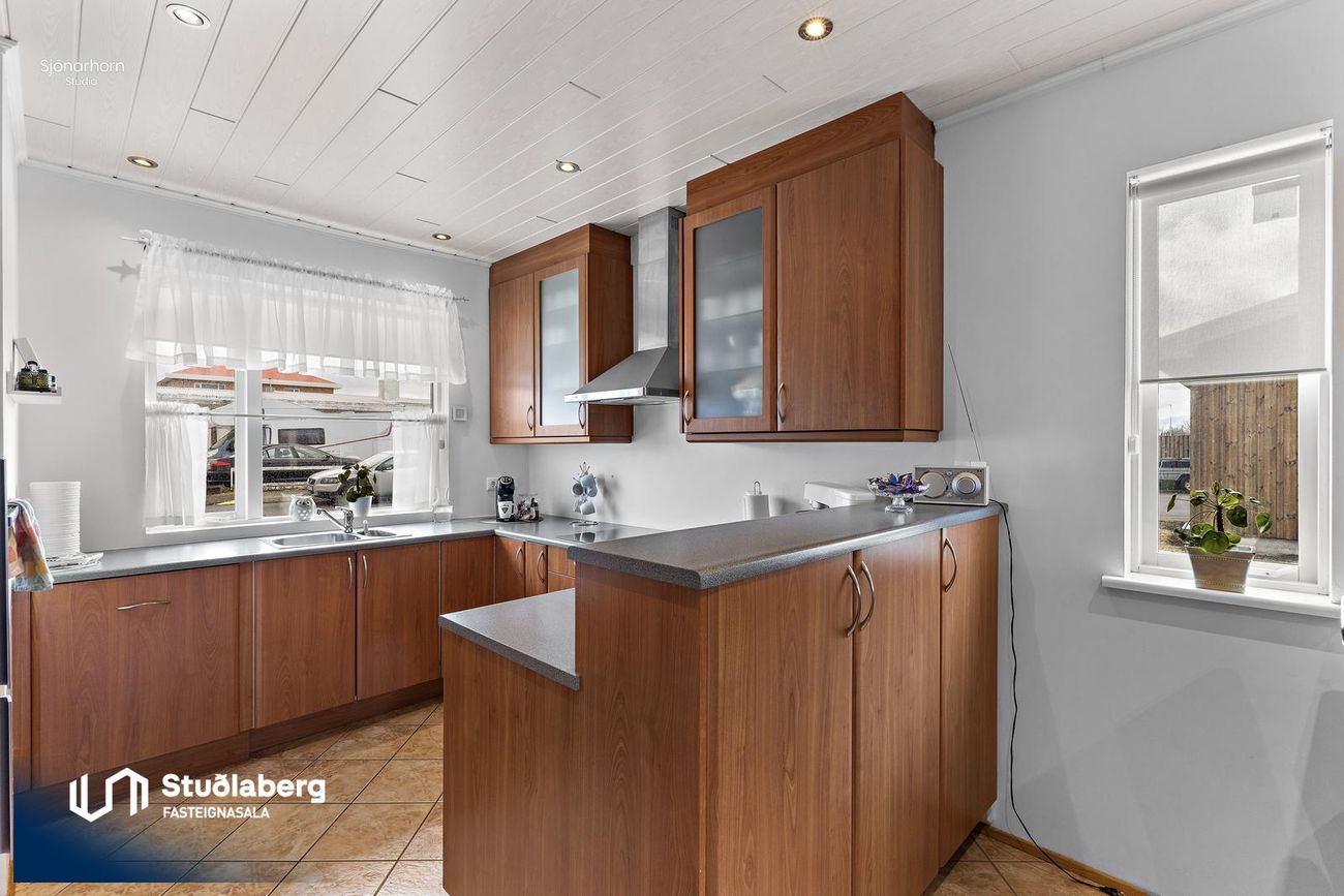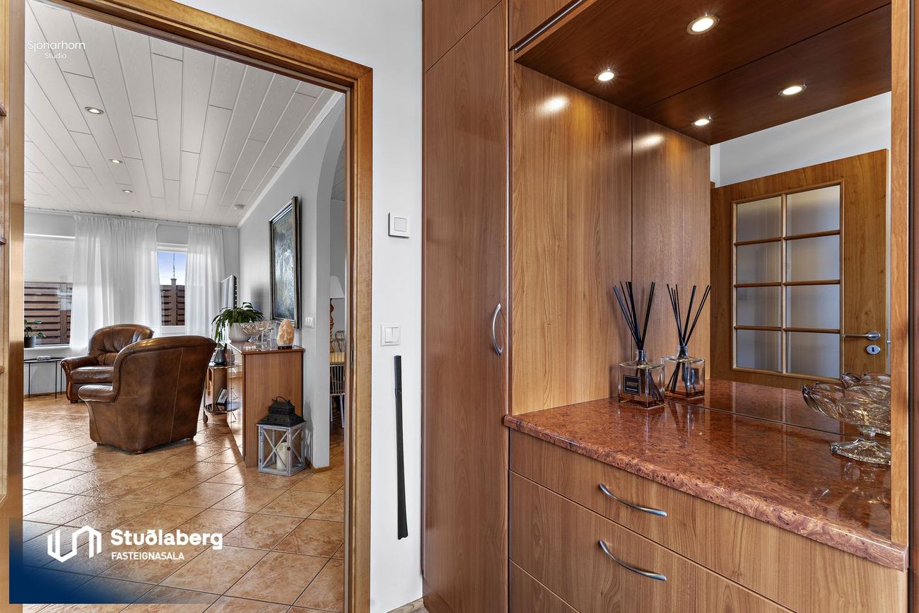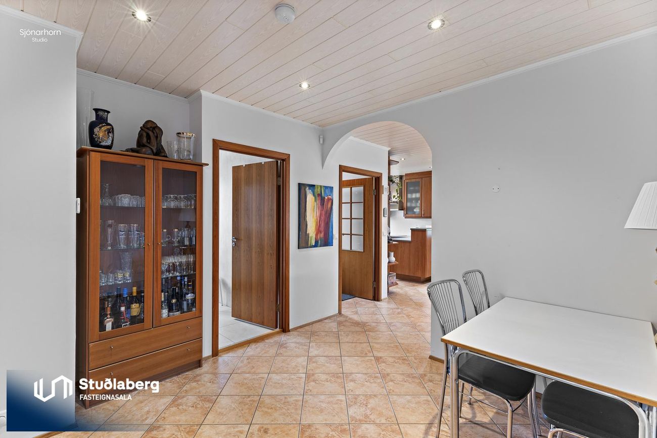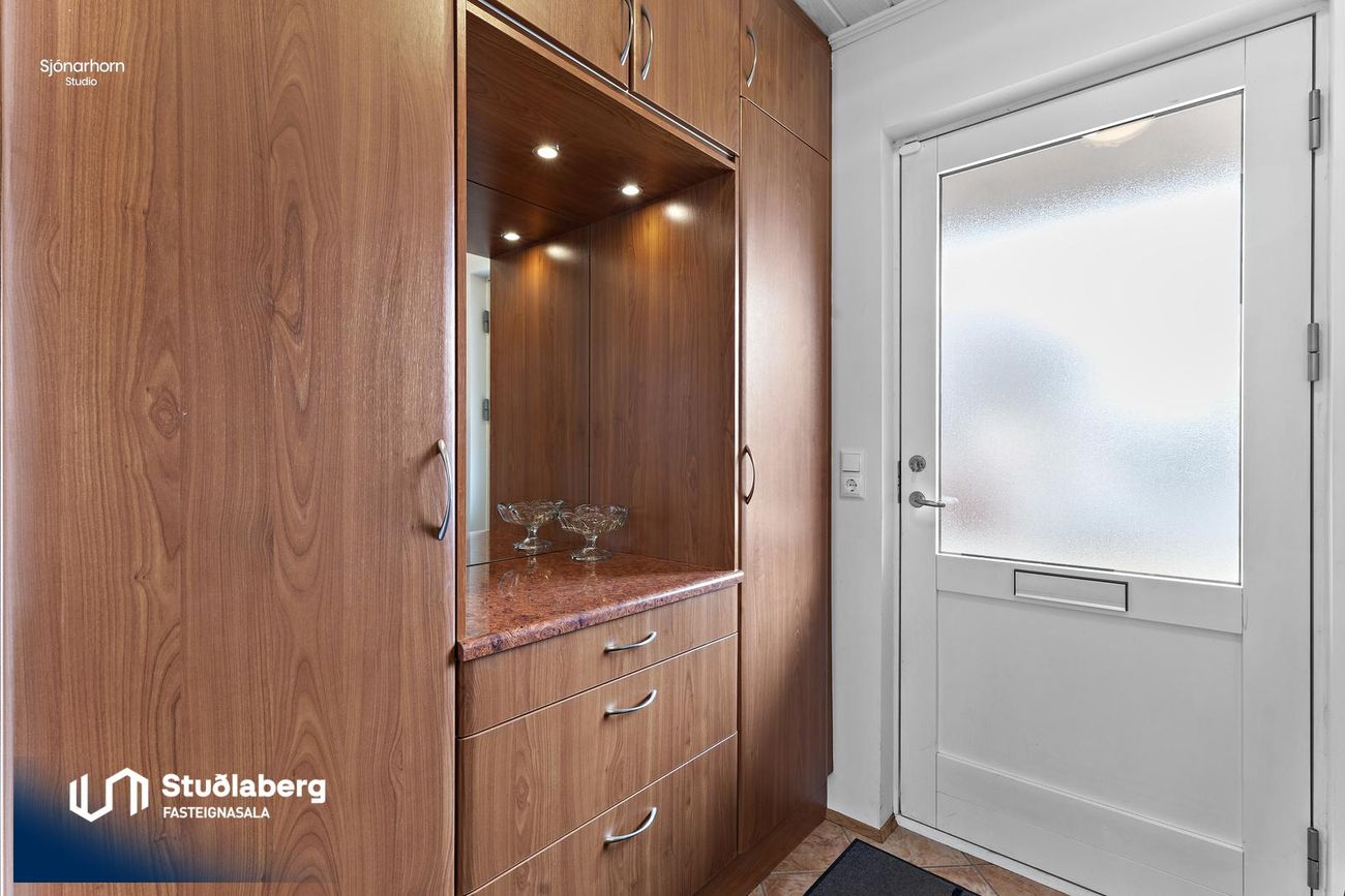 þvottahús og útgengt er á pall frá bílskúr. Gott geymsluloft.