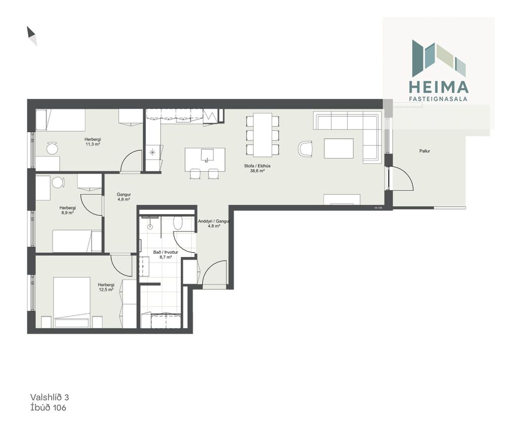 | 25.03.2026 Nánar | 114,6 m² | 1.028.796 kr. | 117.900.000 kr. |