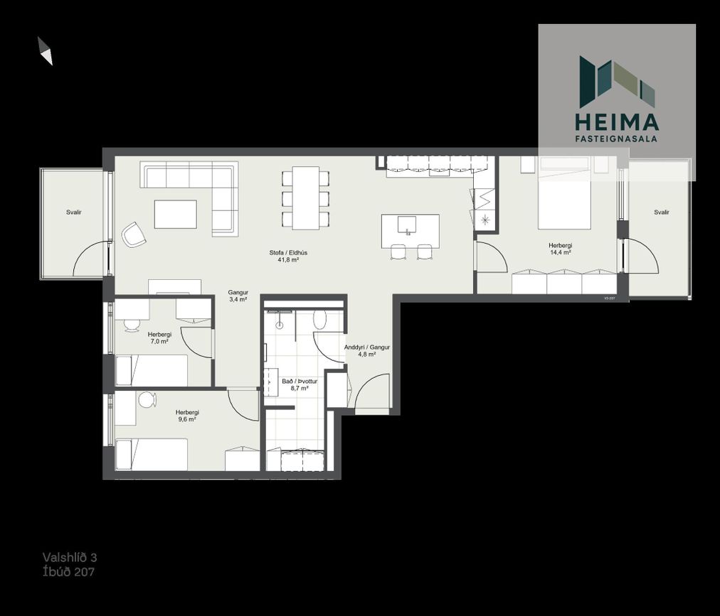 | 3 | 103,60 m² | 112.900.000 kr. 6. apríl 2026 | - - |