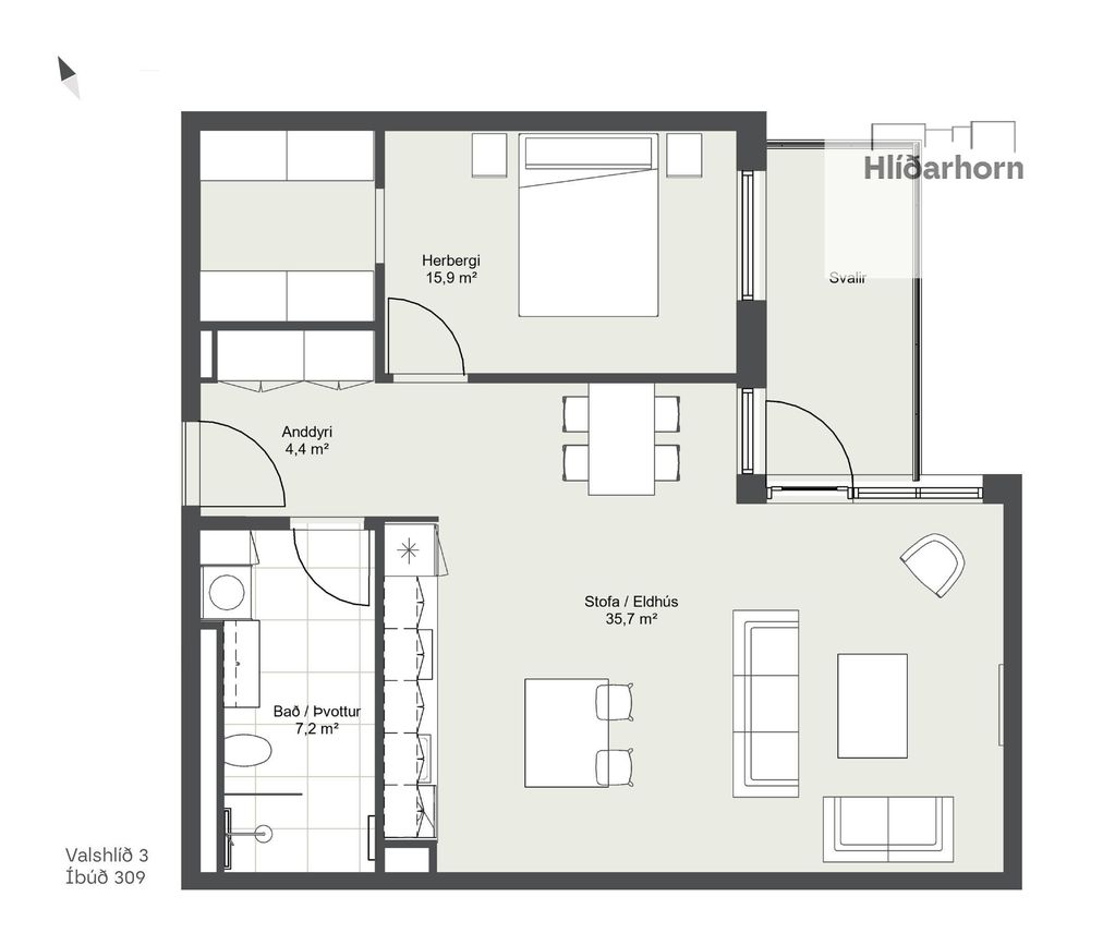 | 2 | 51,90 m² | 62.900.000 kr. 26. apríl 2025 | 62.900.000 kr. 9. desember 2025 |
