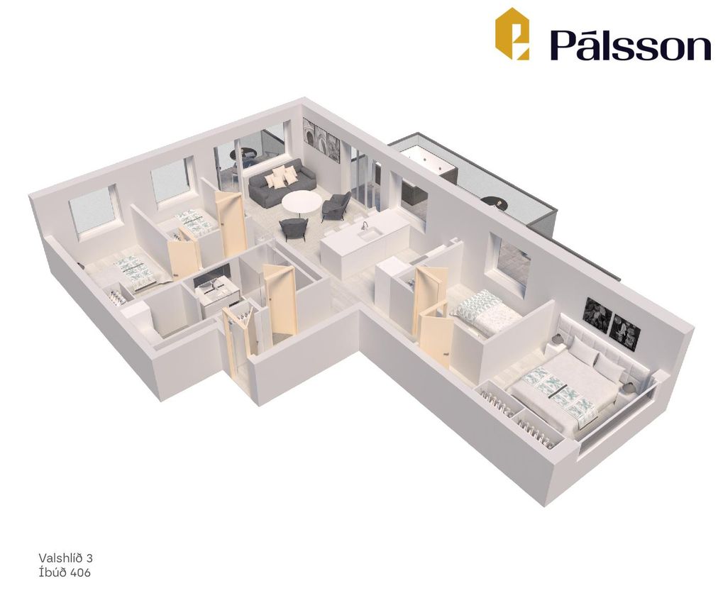 Stórglæsileg 4-5 herbergja útsýnisíbúð á 4. hæð í Valshlíð 3. - PenthouseÍbúðin er staðsett í fyrsta áfanga Hlíðarhorns, glæsilegri nýbyggingu á frábærum stað í miðbænum.
