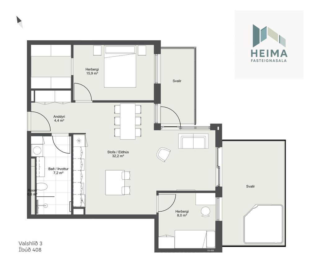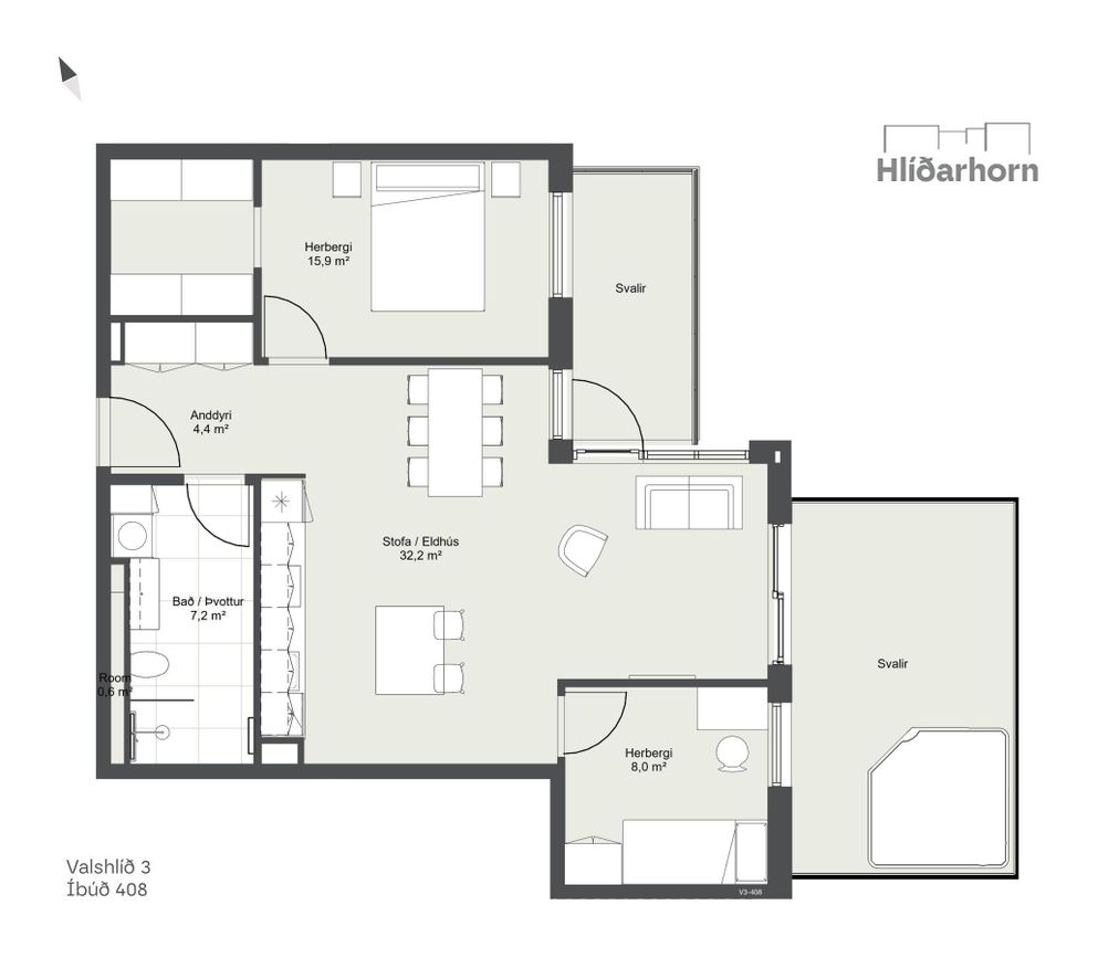 | 3 | 103,40 m² | 108.900.000 kr. 5. apríl 2026 | - - |