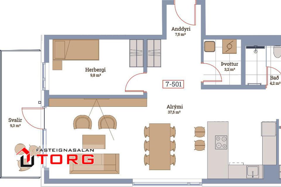 | 3 | 93,50 m² | 84.500.000 kr. 6. júní 2023 | 83.000.000 kr. 5. september 2023 |