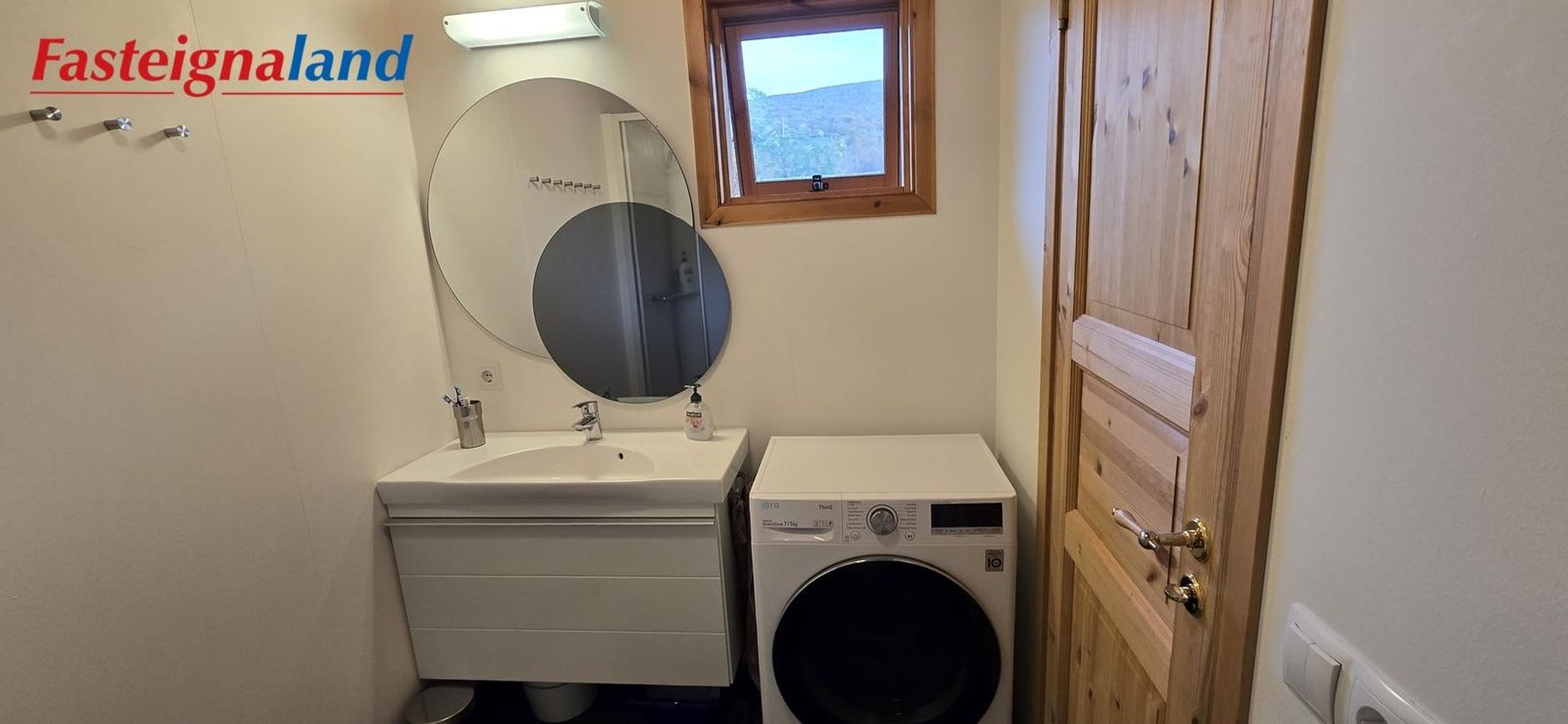 Baðherbergi: Með flísum á gólfi snyrtilegri innréttingu, klóset, vaskur og sturta. Inná baðherberginu er opnanlegur gluggi og aðstaða fyrir þvottavél.