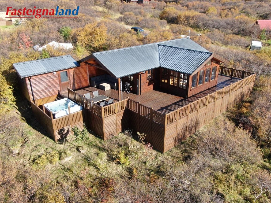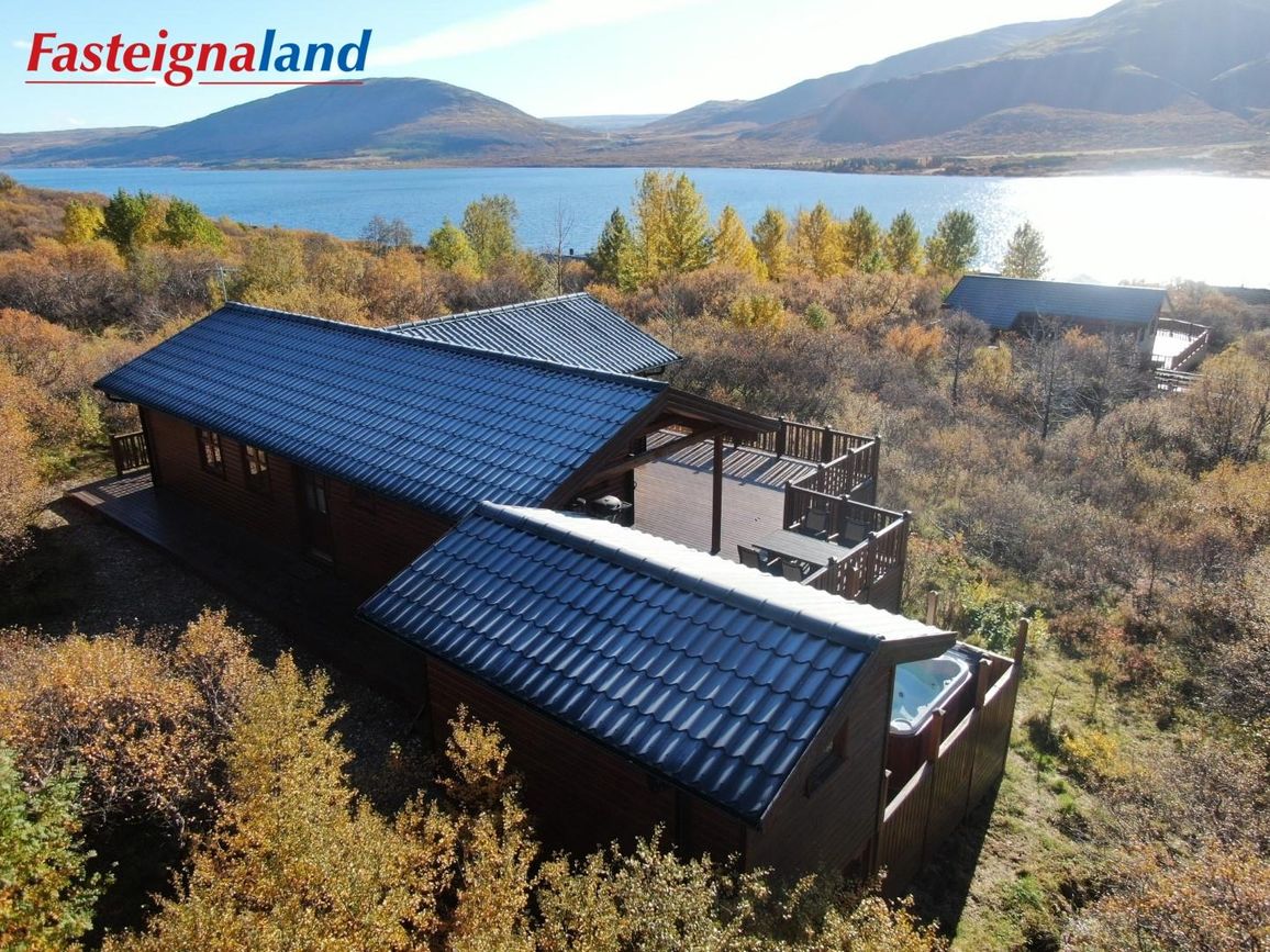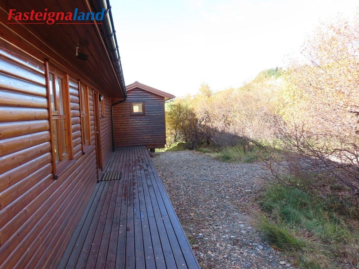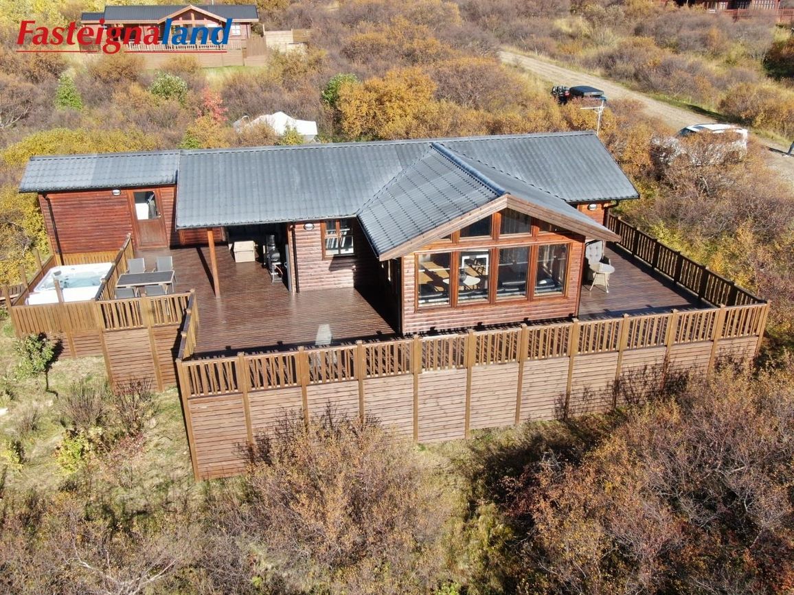 Um er að ræða vel hirtan og smekklegan sumarbústað, sem skiptist í þrjú rúmgóð svefnherbergi, eldhús, stofu og baðherbergi. Einnig fylgir 10 fm geymsla sem hefur verið notuð sem gistirými og auðvelt að breyta í gesthús. Stór og skjólgóð verönd umlykur framhlið bústaðsins sem snýr út á Skorradalsvatn með tilheyrandi stórkostlegu útsýni, hluti af pallinum er yfirbyggður og væri í raun hægt að stækka húsið án mikillar fyrirhafnar. Einnig er heitur pottur á veröndinni, þar sem hægt er að horfa á Norðuljósin og stjörnurnar á kvöldin þegar það býðst.
