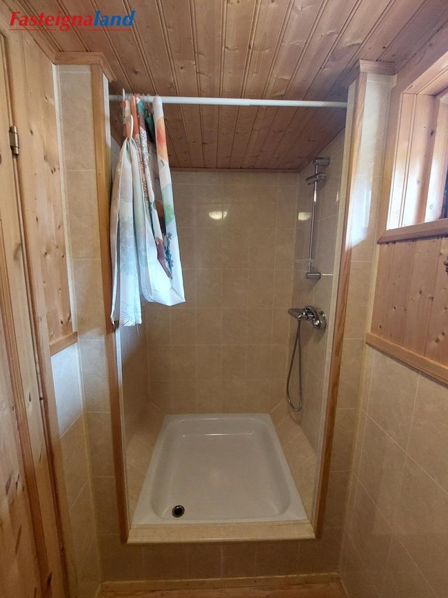 Stofa: Parket á gólfi og með útgang út á stóra timburverönd. Góð lofthæð.