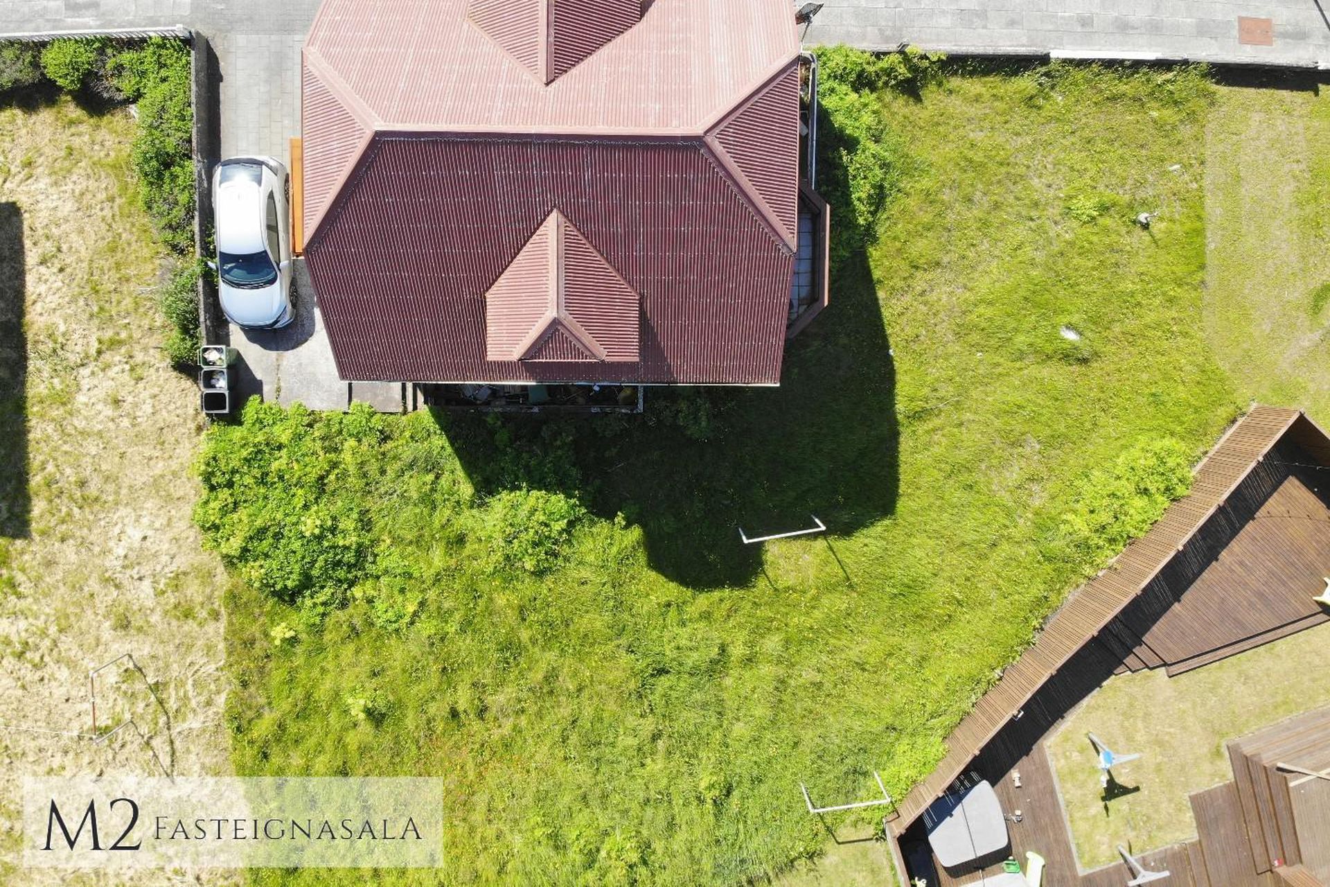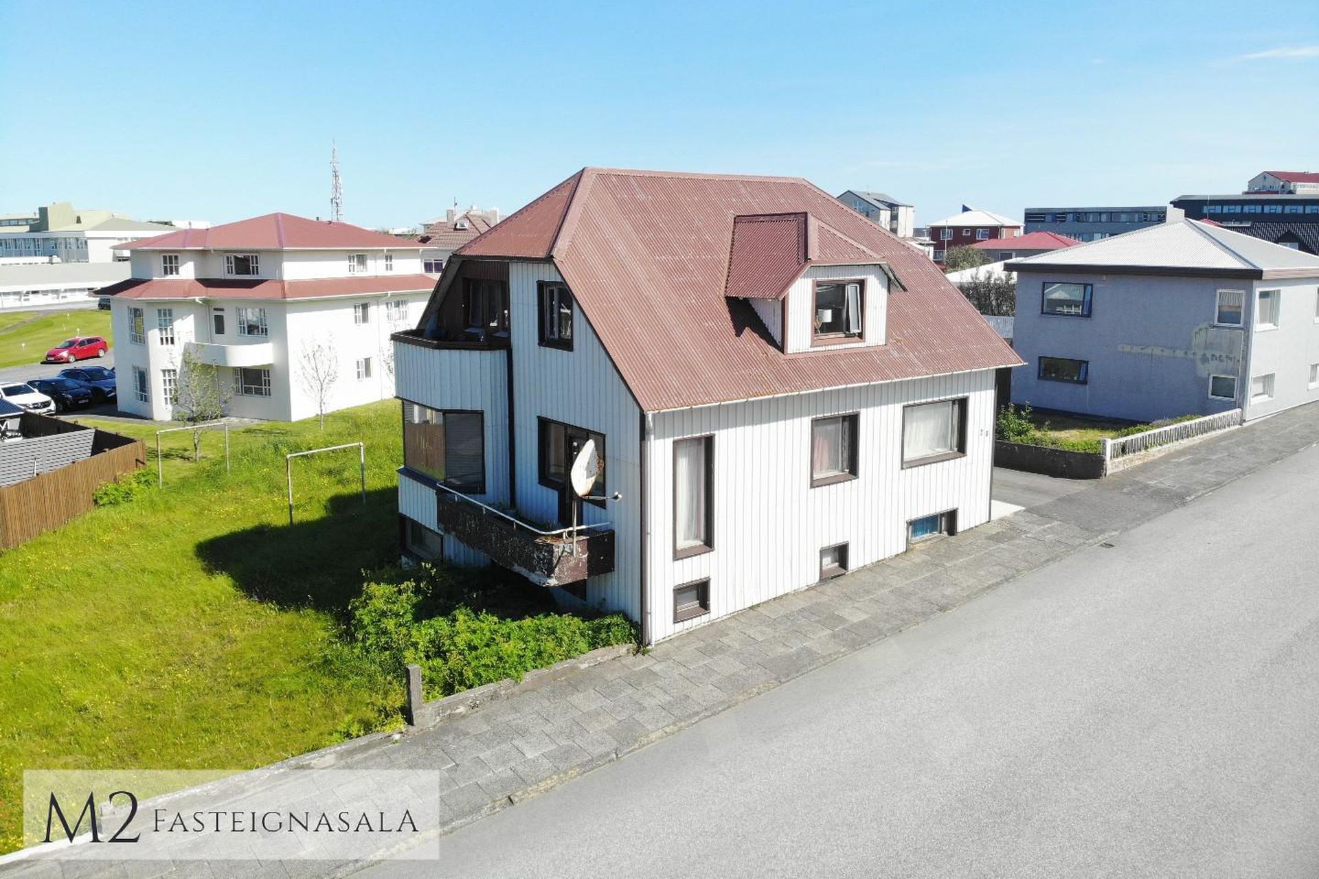 Ytra birði hússins er klætt eldri, viðhaldsléttri klæðningu, lóð er nýtt sameiginlega.