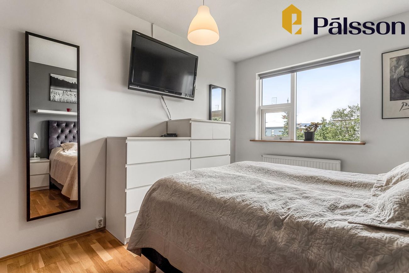 Tvö stór svefnherbergi með parketgólfum. Hjónaherbergi með fataskáp.