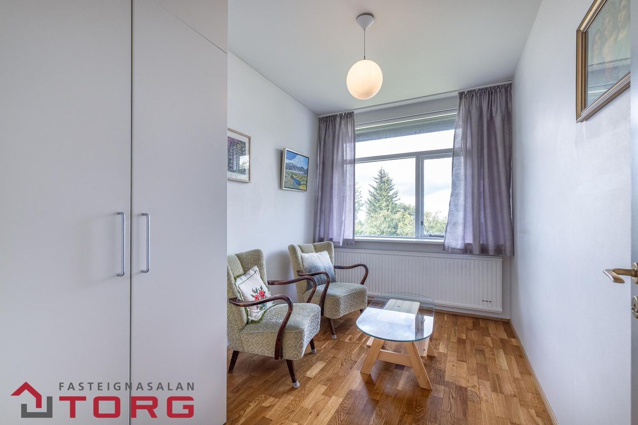 Svefnherbergi 4, með fataskáp, hefur verið sameinað 5.herberginu og auðvelt er að breyta því aftur. Parket á gólfi. Gluggi til norð/austurs.