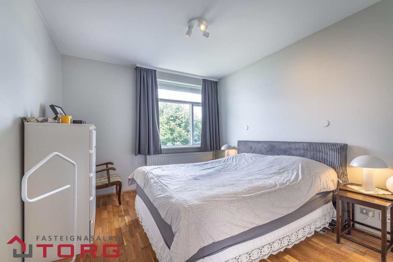 Svefnherbergi 2, rúmgott hjónaherbergi með fataskáp á einn vegg, parket á gólfi. Gluggi til suð/vesturs.