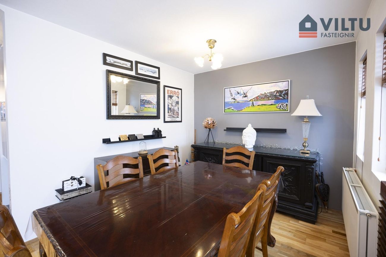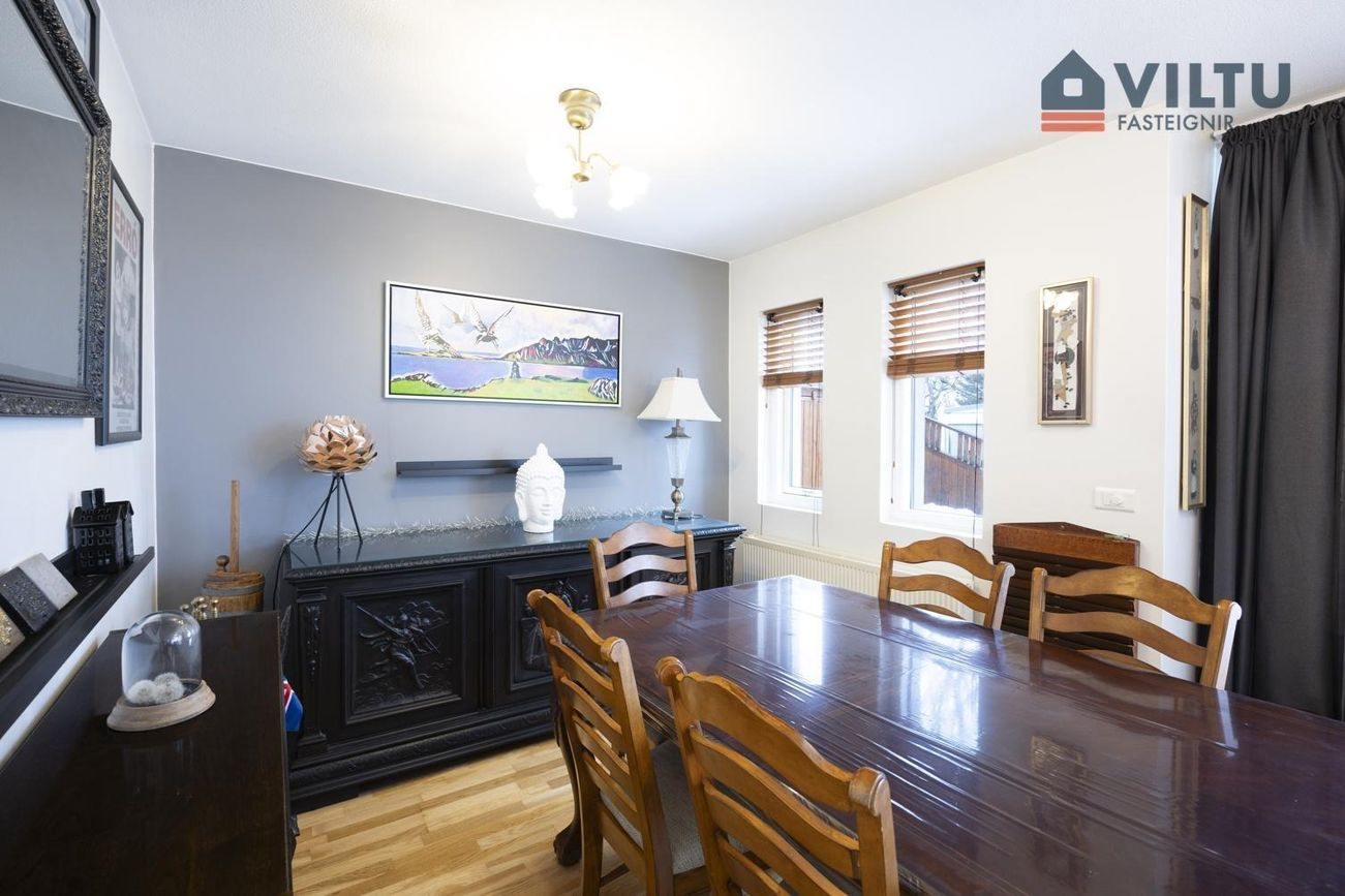 Húsið er á tveimur hæðum og hefur fengið gott viðhald í gegnum árin.