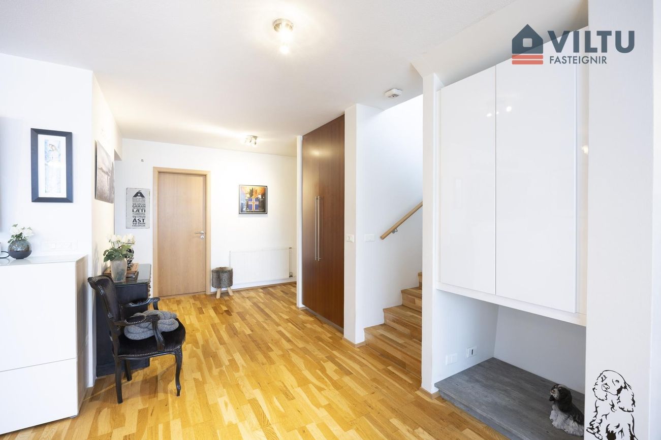 Hol: Frá anddyri er gengið í rúmgott hol. Þaðan er gengið í önnur rými á hæðinni. Þar er einnig rúmgóður innbyggður fata- og geymsluskápur.